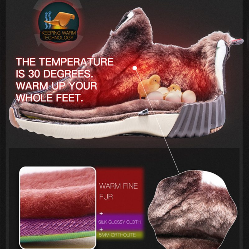 (1)Two different styles vamp: a.Pig Leather vamp:this material is soft and wearable.It keeps feet warm in winter. b.microfiber vamp:the thick microfiber material is wearable and waterproof. (2)Wool warm lining Inner:the inner is soft fur warm as cony hair around your whole feet.No fear of coldness anymore.The temperature is 30 degree warm your whole feet in winter. (3)Elastic soft outsole:soft waffle outsole of high-class rubber with firm grip. (4)conjoined tongue:special tongue design,prominent tongue.soft thick and stylish. |