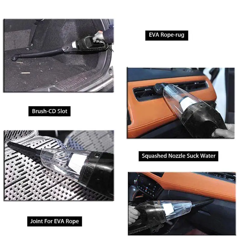 Can effectively clean the dust inside the car and its extended mouth can clean all corners of your car. Keep your car clean and tidy all the time. Can suck cigarette ash, cookie crumbs, eraser crumbs, hair, rice, etc.