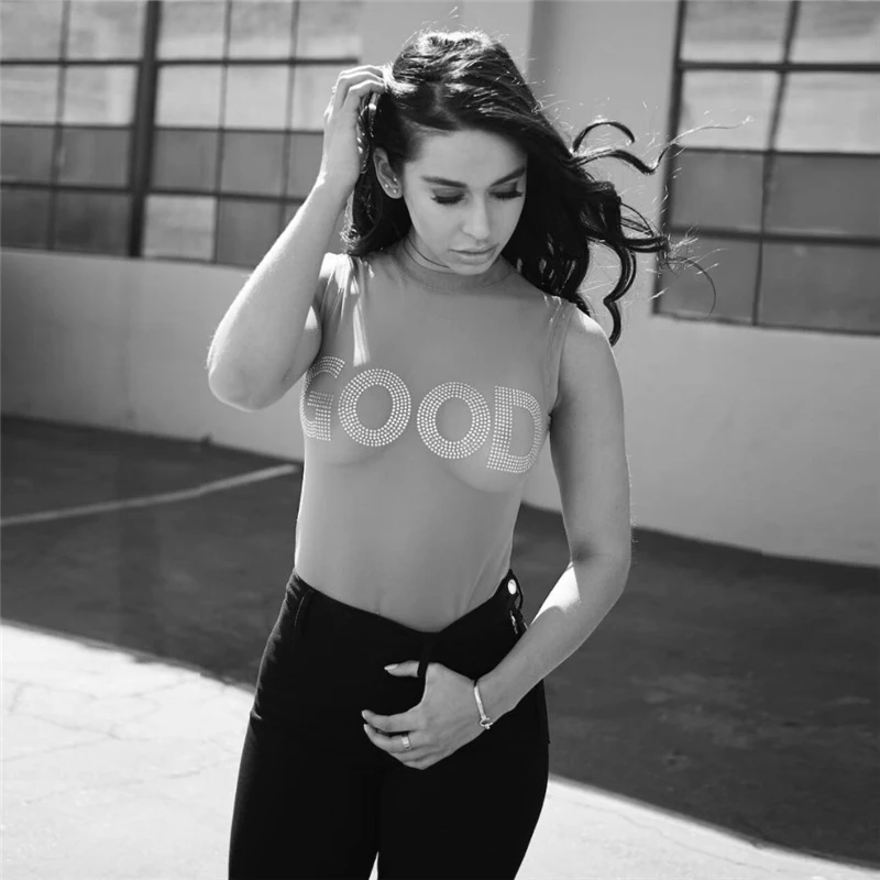 Onlyoung 2017 Summer Women Sexy Bodysuit Transparent Sleeveless Diamond Sequin Black Mesh Jumpsuit