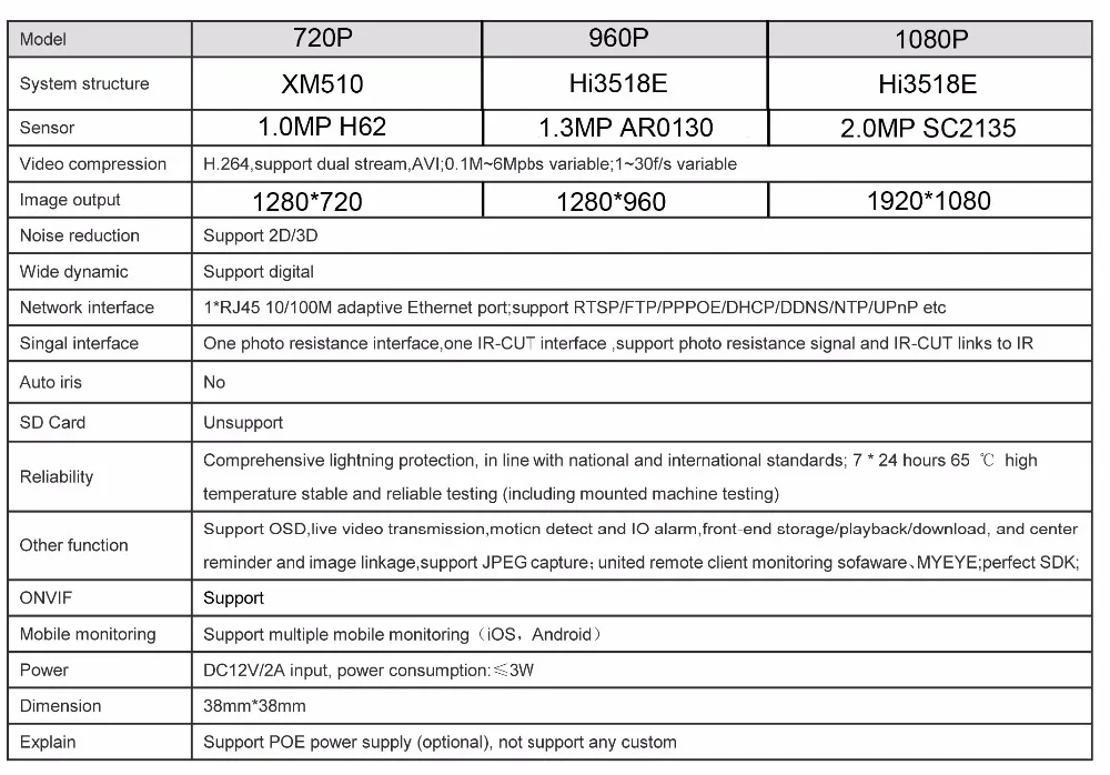- support Onvif Version: 2.0