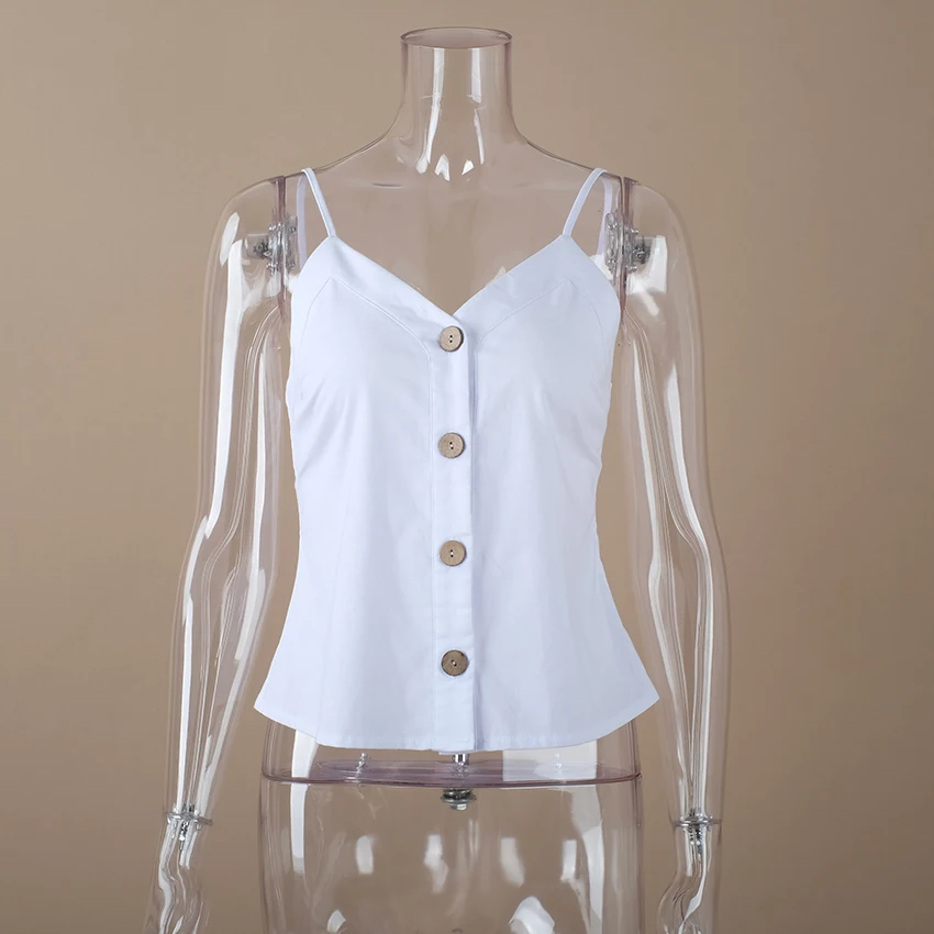 OOTN V Neck Sexy Tank Top Women Sleeveless Summer Shirts Female Tunic Tops Camis Casual Ladies 2018 Button Down Debardeur Femme