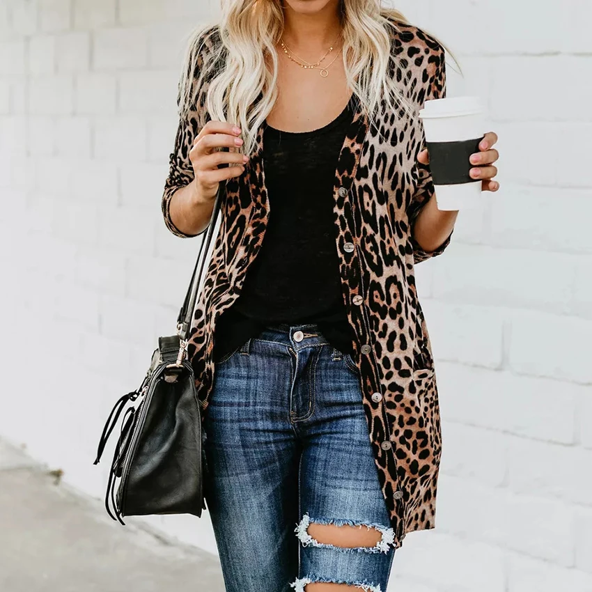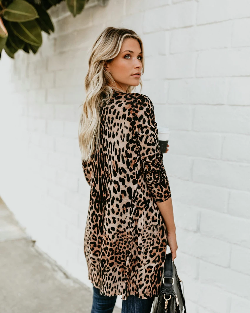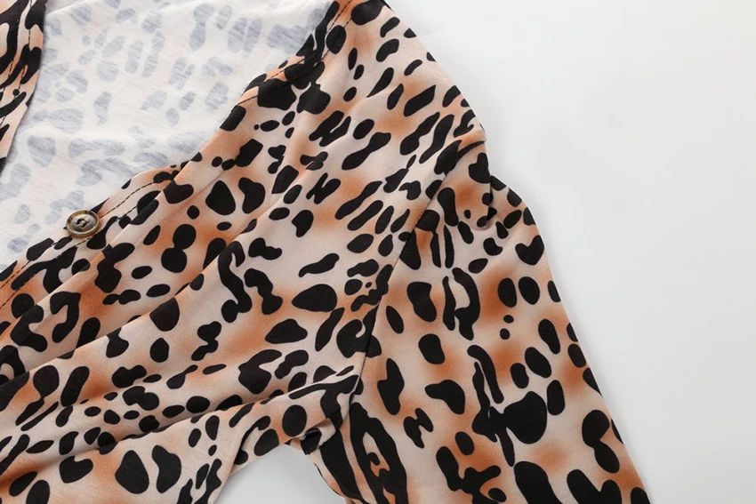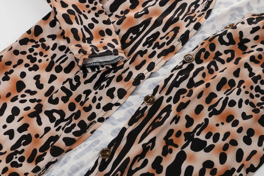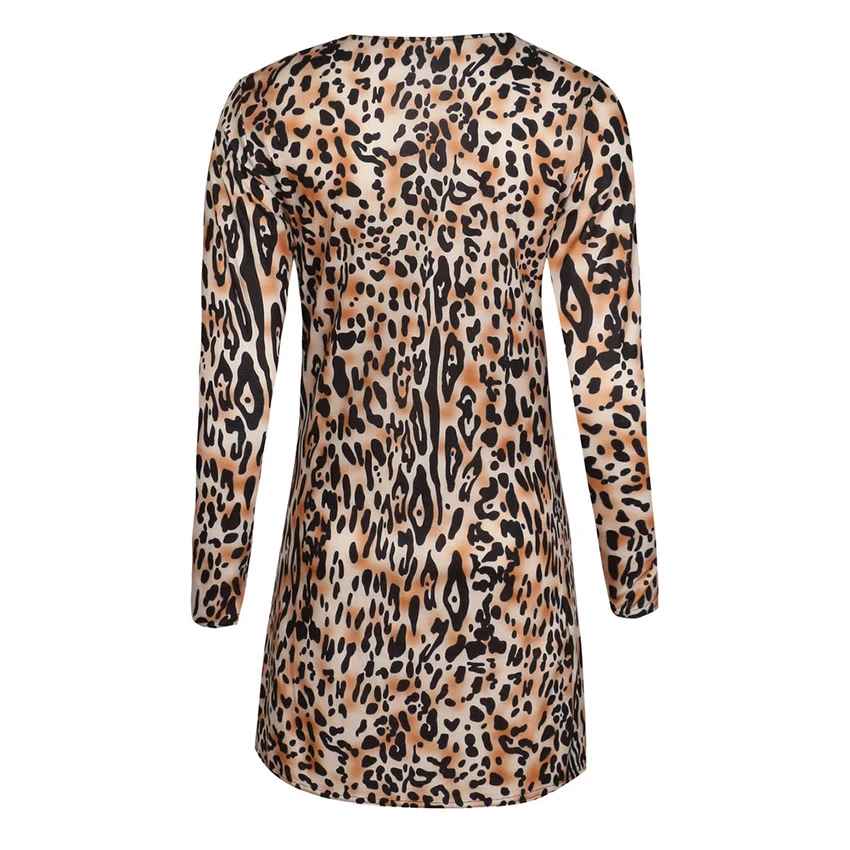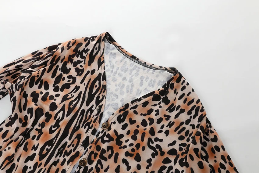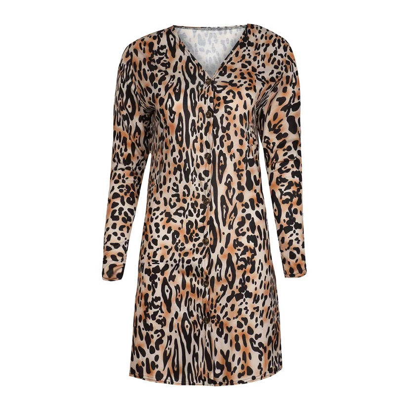 OOTN Vintage Leopard Print Dresses Shirt Women Long Sleeve Dress V Neck Mini Dress Ladies Autumn Winter Button Casual Vestidos