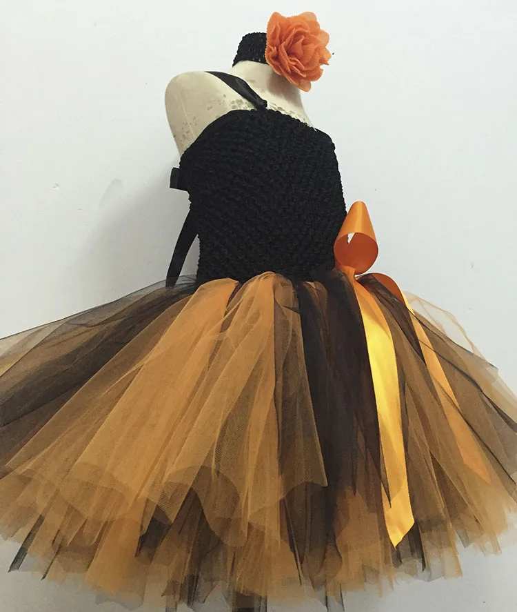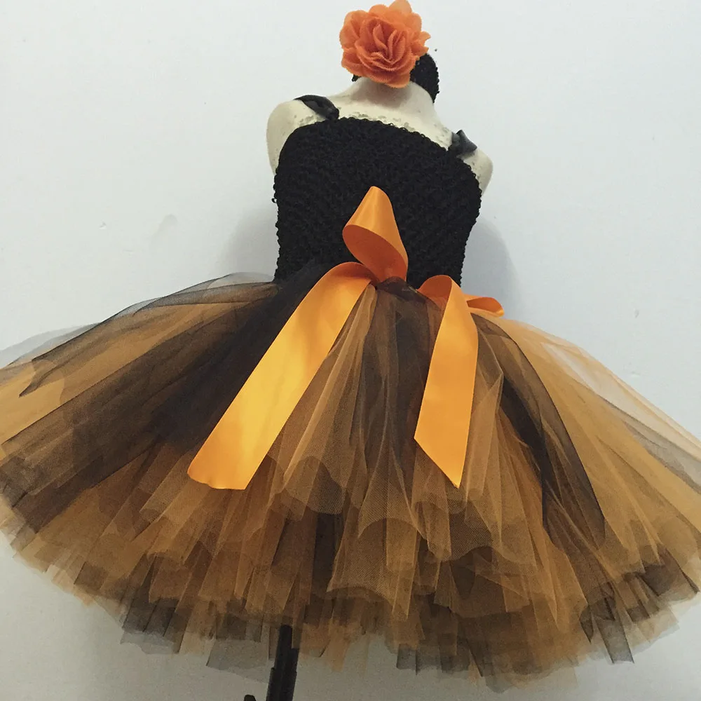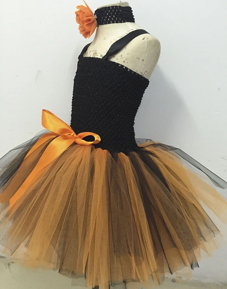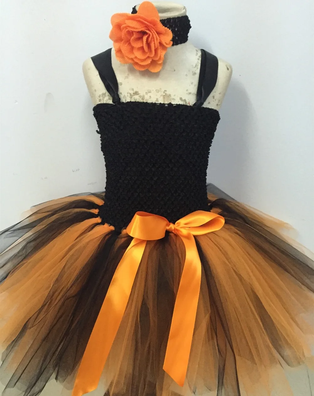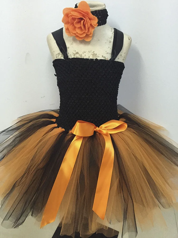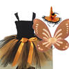 Orange Black Girl Halloween Tutu Dress with Wings And Hat Little Girls Pumpkin Thanksgiving Scary Costume Kids Festival Outfits