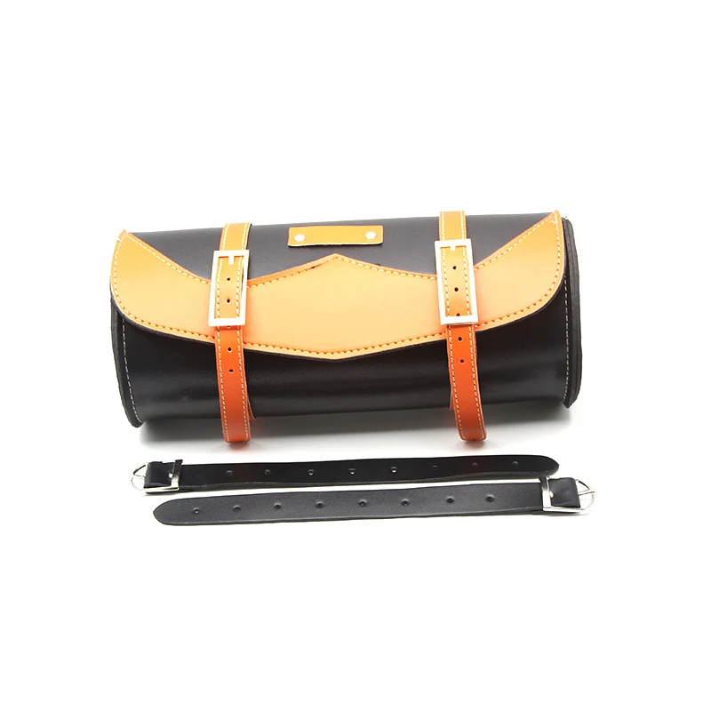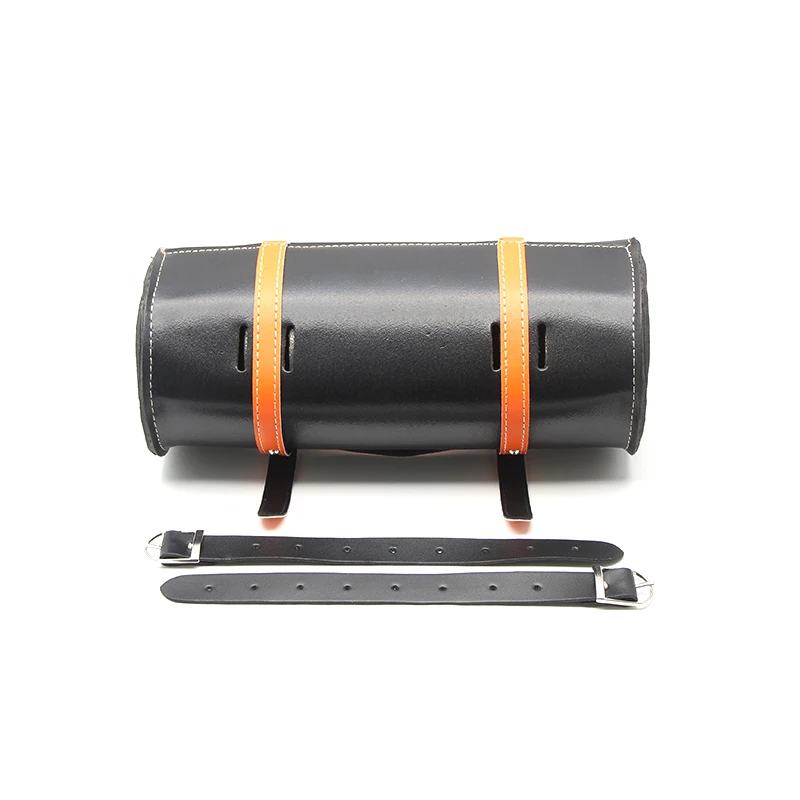 Orange/Black Motorcycle PU Leather Round Roll Front Fork Tool Bag Saddlebag Storage Side Pouch For Harley Custom PE