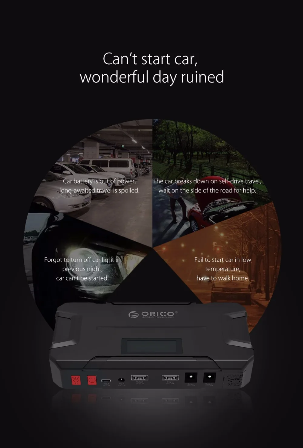 ORICO CS2 12000mAh Mini Emergency Power Bank Portable Mobile Battery Emergency Booster Buster Power Bank For Phone Laptop Car