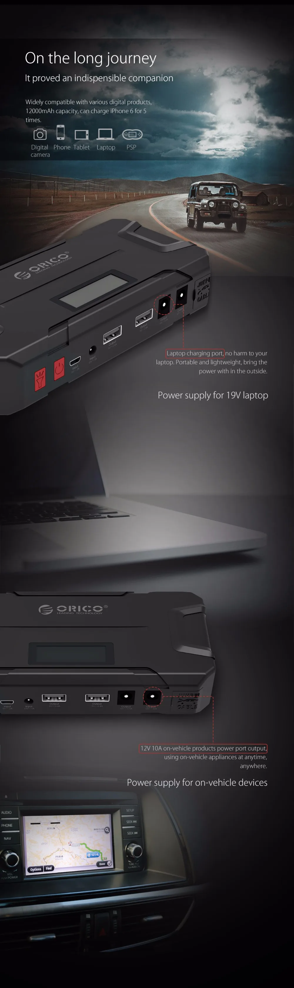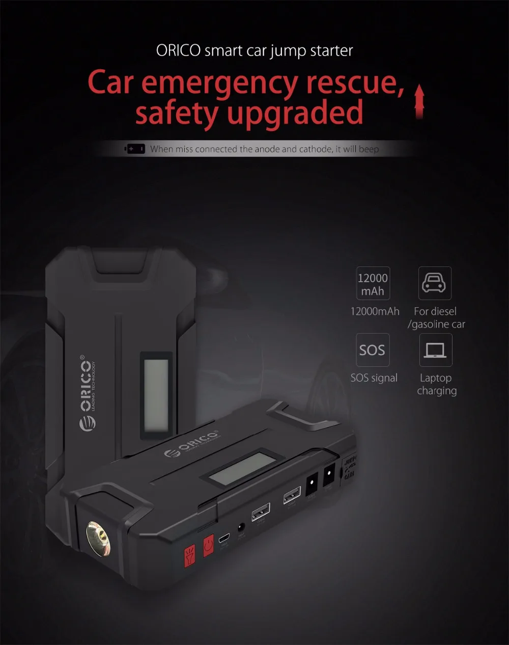 ORICO CS2 12000mAh Mini Emergency Power Bank Portable Mobile Battery Emergency Booster Buster Power Bank For Phone Laptop Car