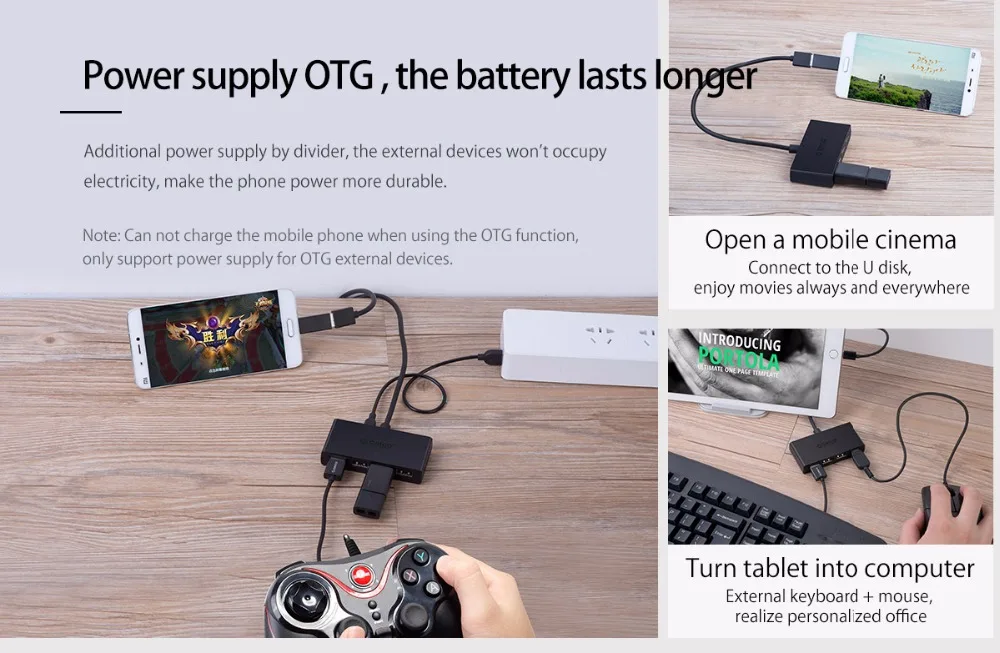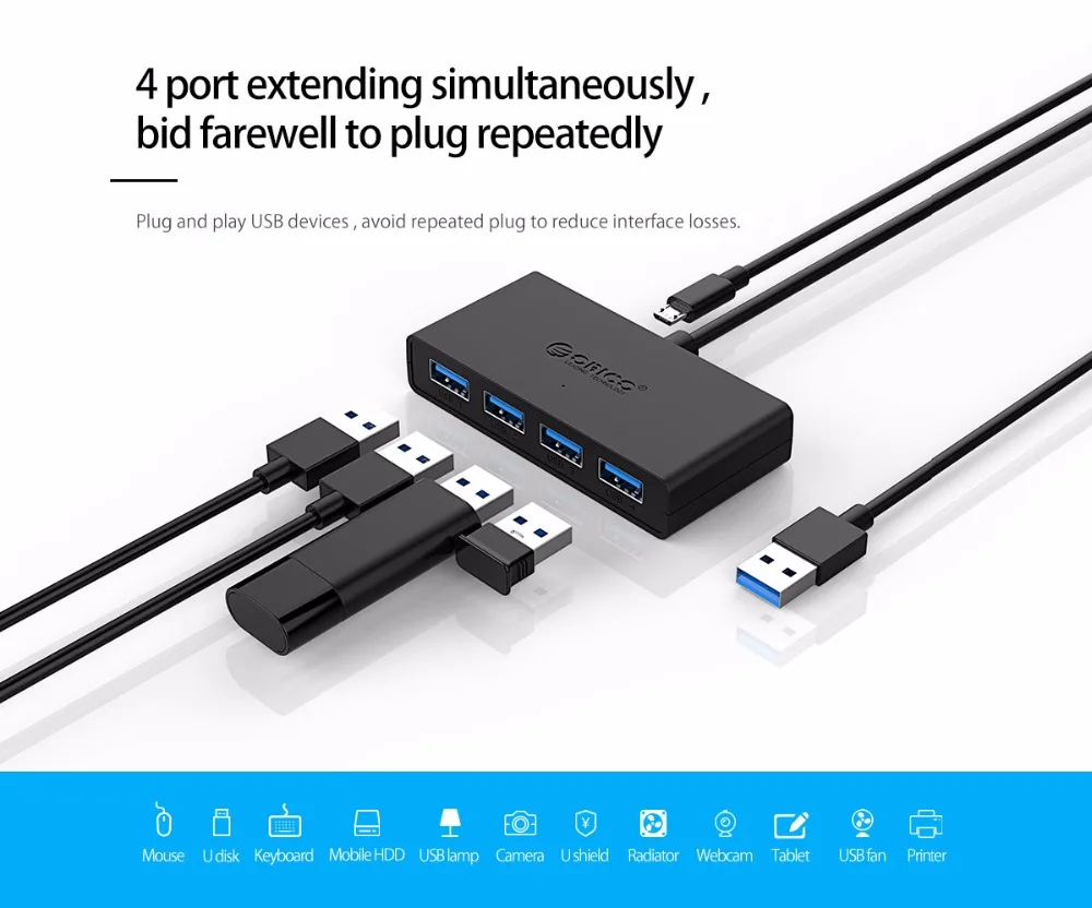 ORICO Mini USB 3.0 HUB 4 Port Power Supply OTG with Micro USB Power Interface for MacBook Laptop Tablet Computer OTG USB HUB