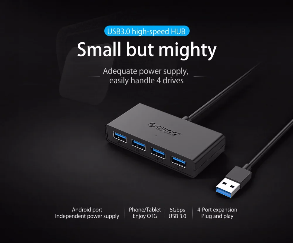ORICO Mini USB 3.0 HUB 4 Port Power Supply OTG with Micro USB Power Interface for MacBook Laptop Tablet Computer OTG USB HUB