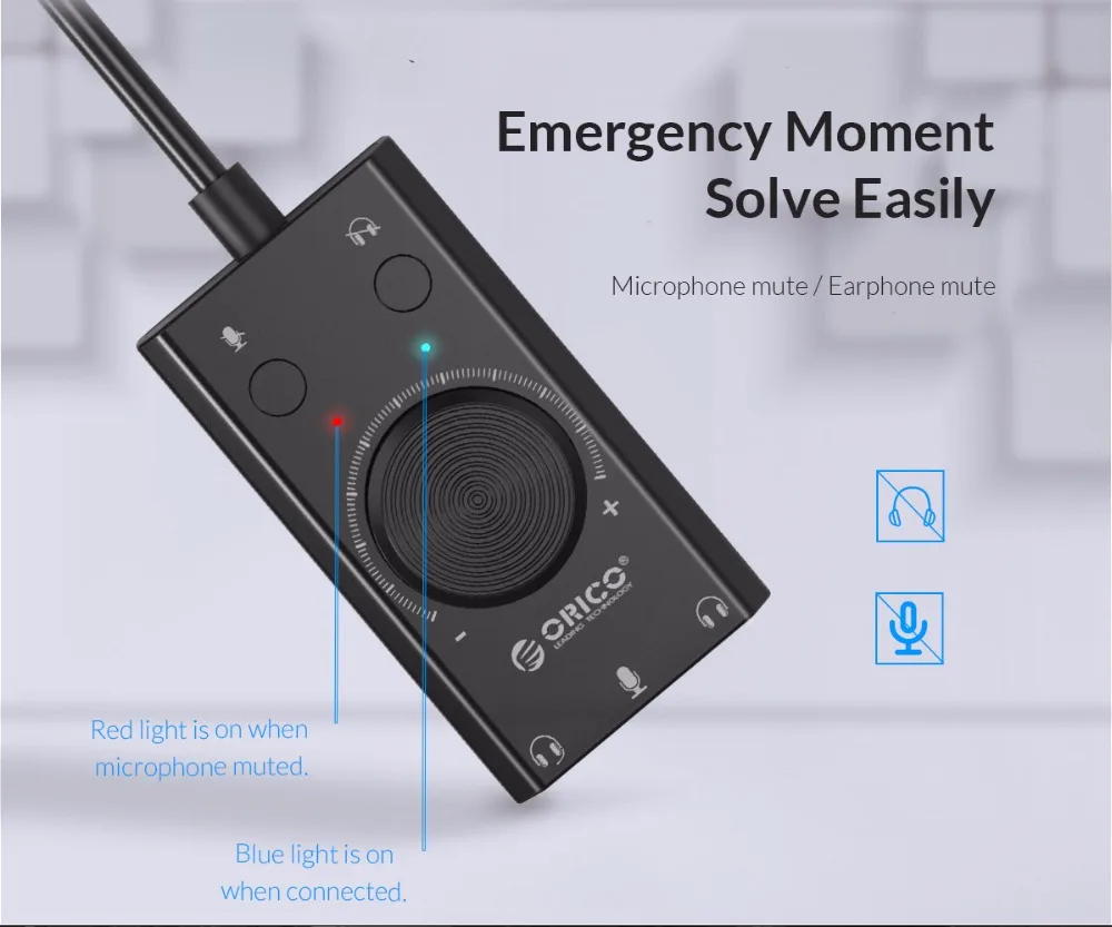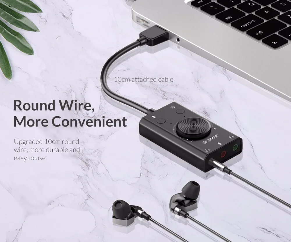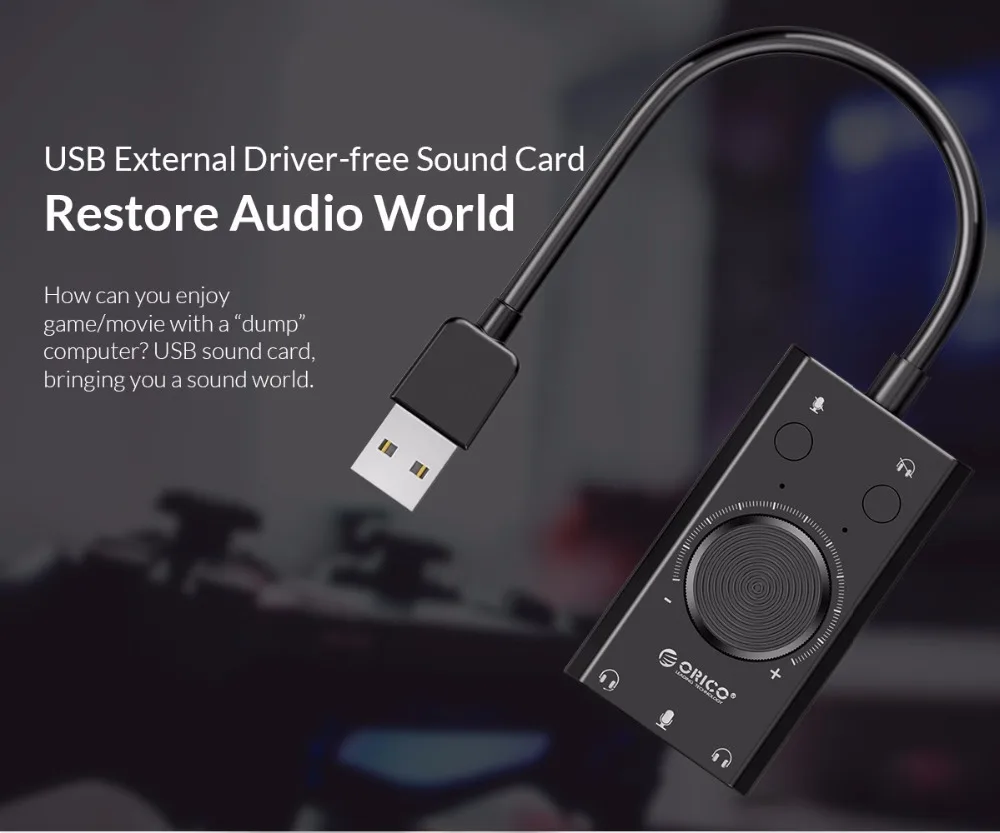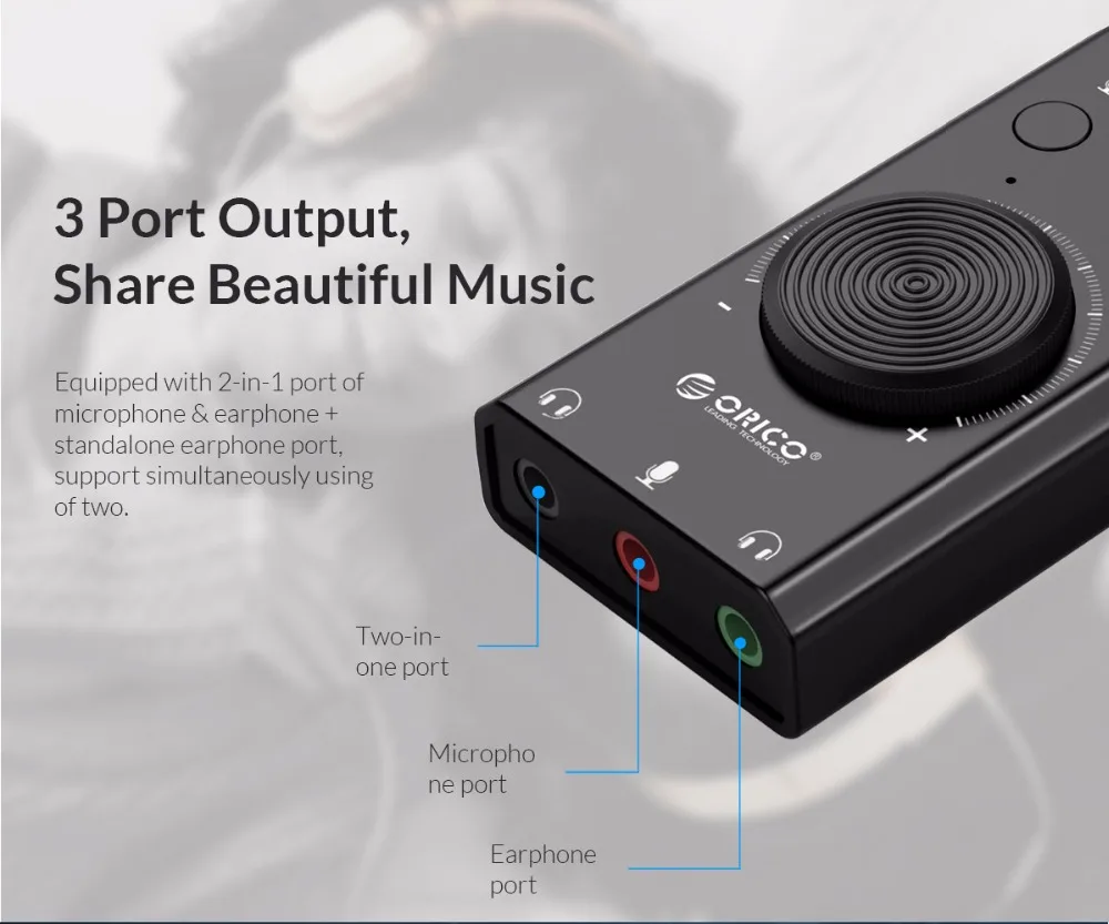 ORICO Portable USB External Sound Card Microphone Earphone Two-in-One With 3-Port Output Volume Adjustable For Windows/Mac/Linux