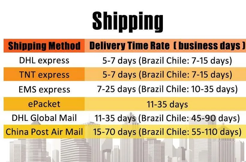 Packages from our warehouse in China will be shipped by ePacket or EMS depending on the weight and size of the product. Packages shipped from our US warehouse are shipped through USPS.