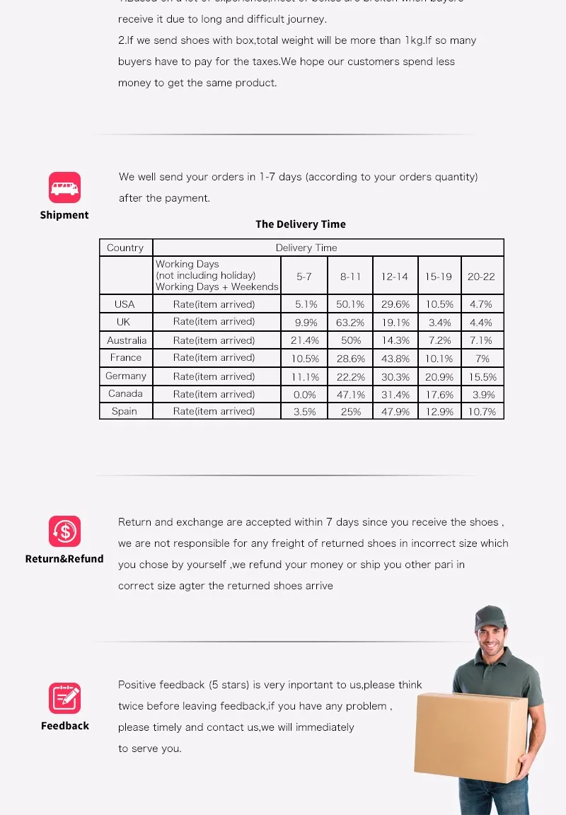 • If you did not receive the product within the guaranteed time( 45 days not including 2-5 day processing) you can request a refund or a reshipment.