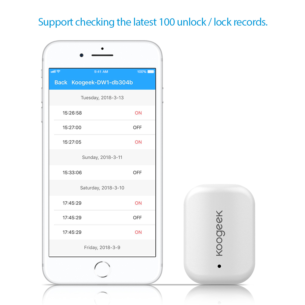Support checking the latest 100 unlock / lock records and viewing the battery level on the Koogeek Home app.