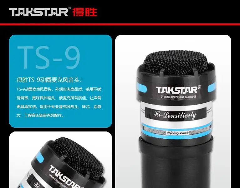 Original Takstar TS-9 wired dynamic microphone sound head microphone core use for karaoke bar project