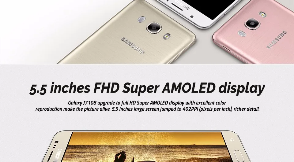 Original Unlocked Samsung Galaxy J7 J7108(2016) 5.5 Inch 3GB RAM 16GB ROM LTE 4G 13MP Camera Octa Core FDD/TDD NFC Mobile Phone