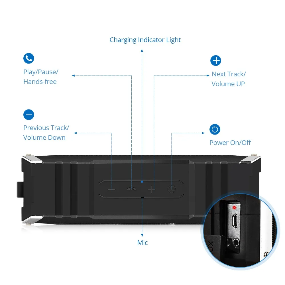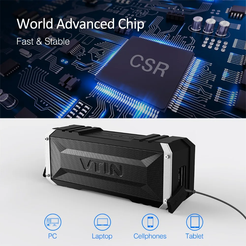 Original VTIN Bluetooth 4.0 Speaker 20W Outdoor Waterproof Wireless Portable Speaker Stereo Music Super Bass 25 Hours Play Time