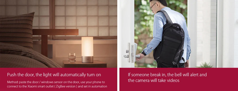 Connected with door sensor: light and ring for you when you open the door