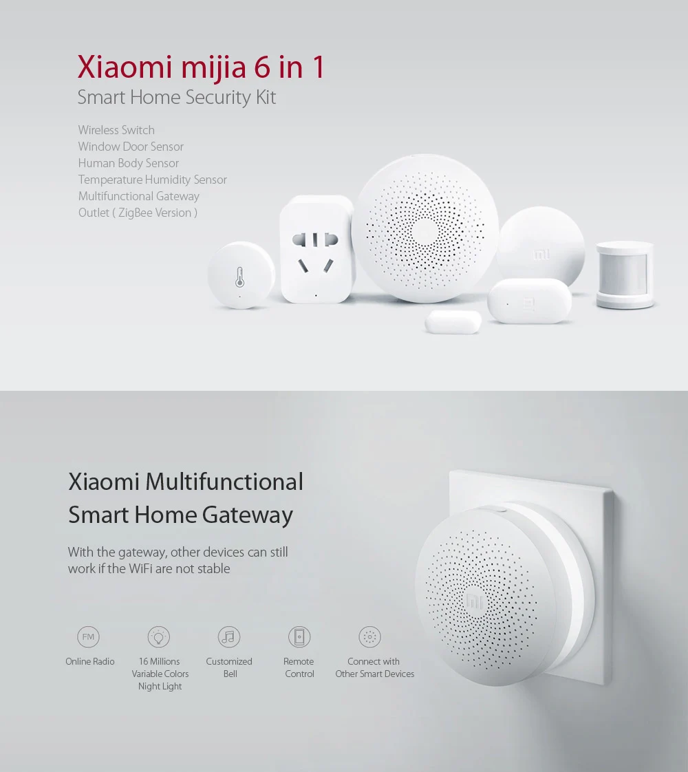 Original Xiaomi 6 in 1 mijia Smart Home Aqara Security Set Gateway Remote Control Window Door Sensor Set Switch Body Sensor