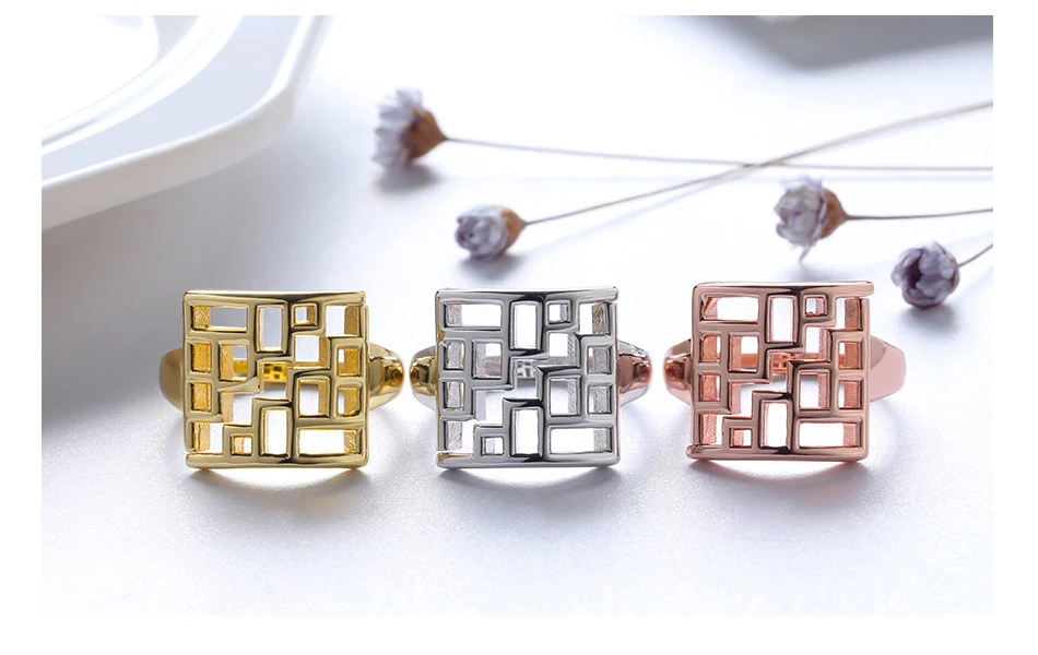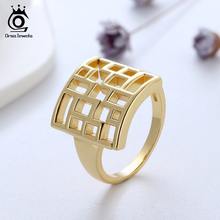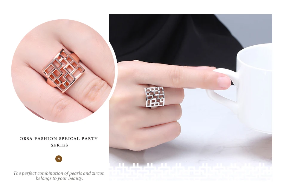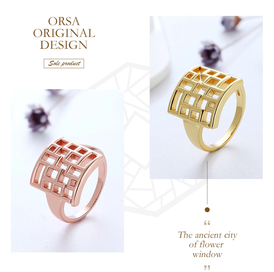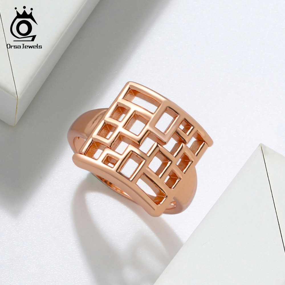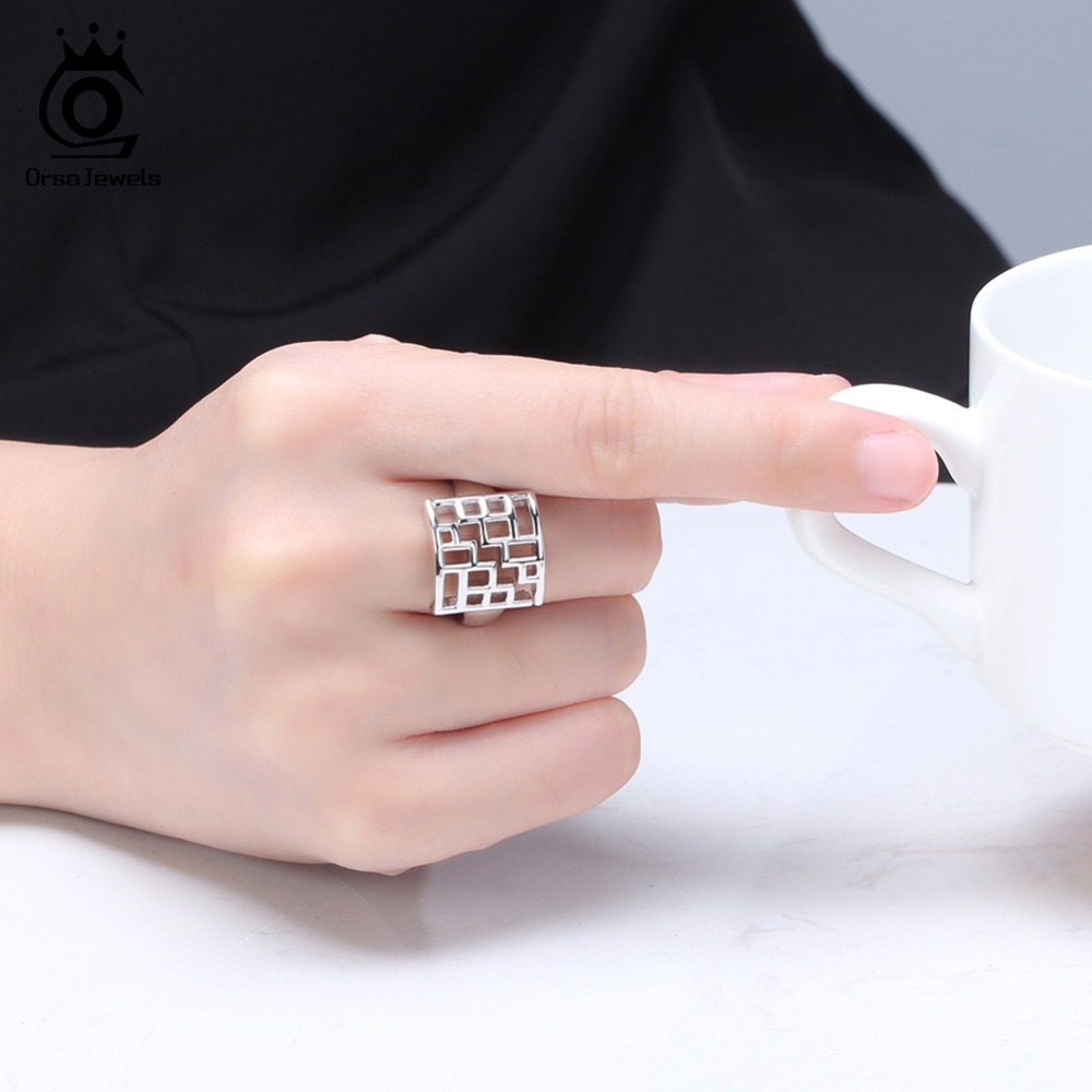 ORSA JEWELS Ring For Women Hollowed Splicing Flower Window Pattern High Polished 3 Colors Girl Adjustable Rings Jewelry OR160