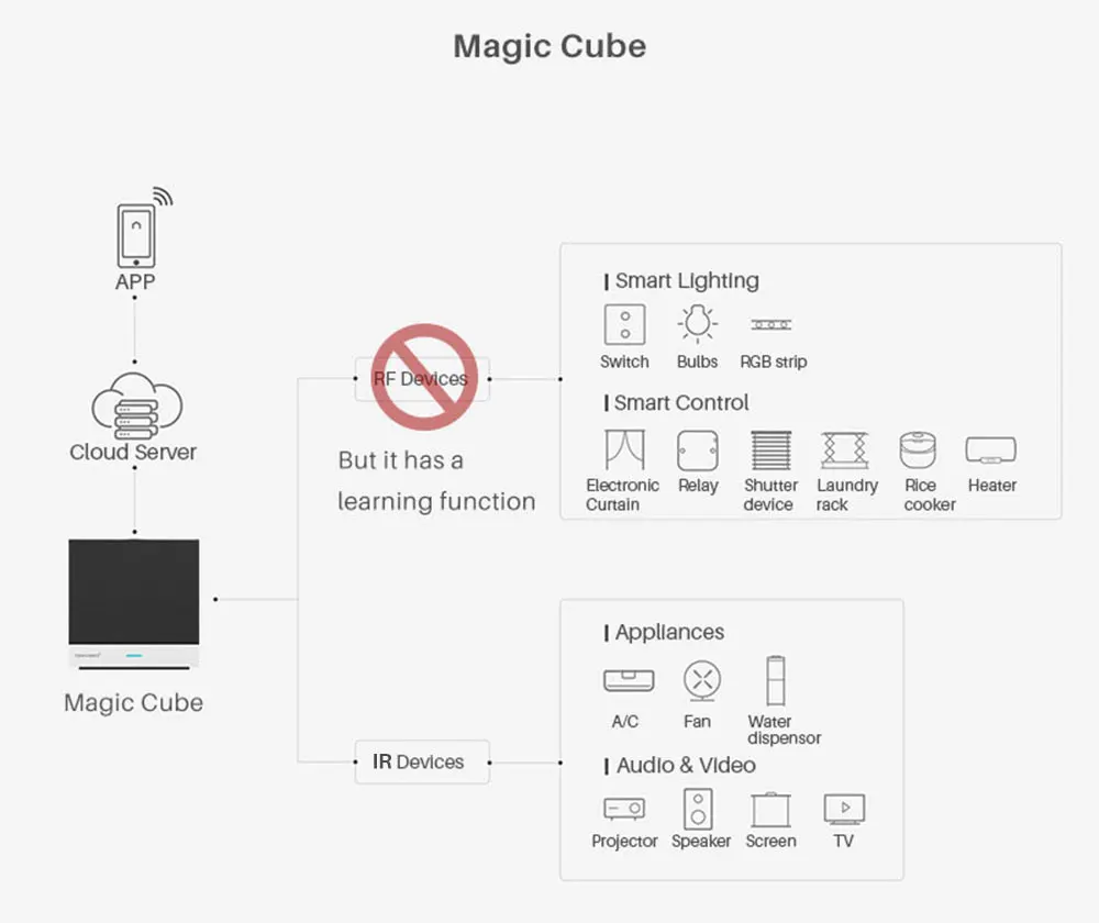 Note: Infrared remote control for small appliances is recommended to purchase Orvibo Magic Cube learning IR smart remote control.