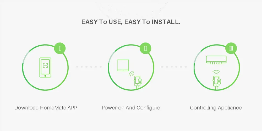 1.Download HomeMate APP 2.Power-on And Configure 3.Controlling Appliance