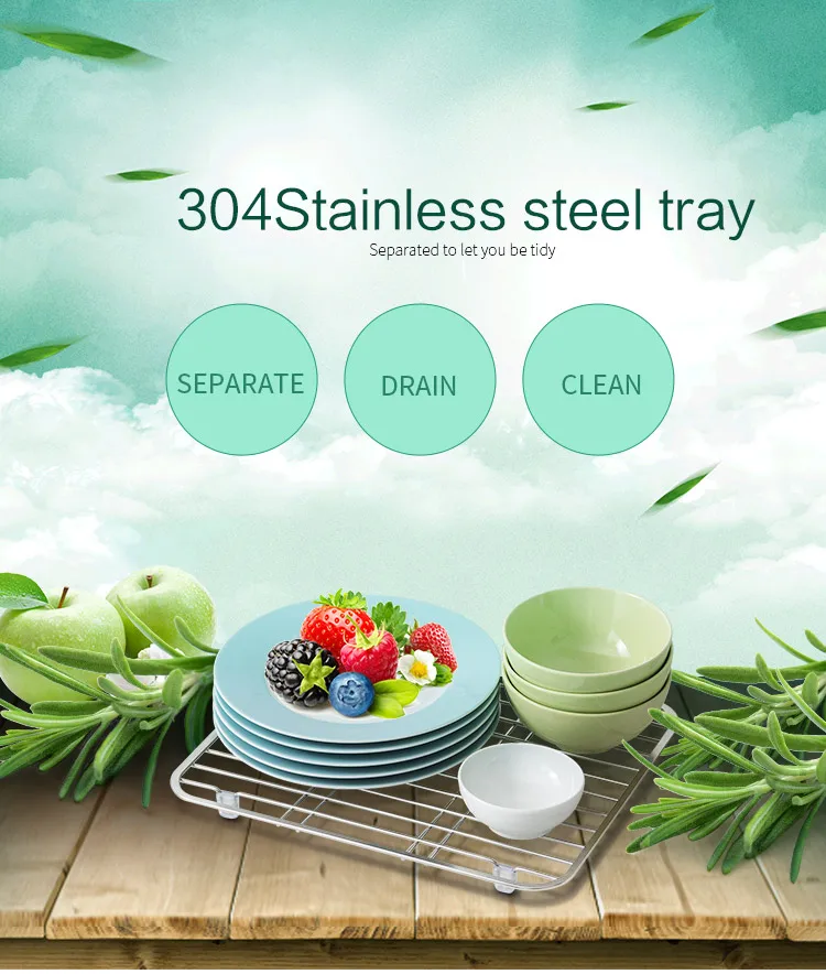• 304 stainless steel construction with PVC feet provide a stable base that reduces sink scratches.