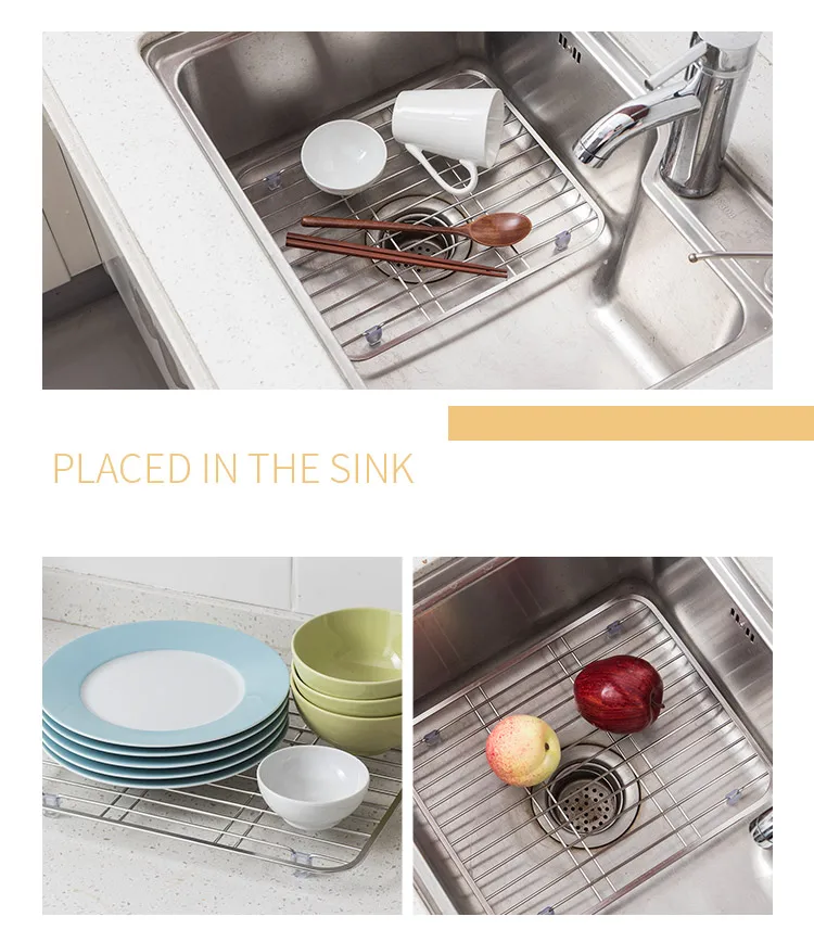 ORZ Stainless Steel Sink Drainer Rack Multifunctional Kitchen Fruit Vegetable Dish Drying Rack Kitchen Sink Protector Grid