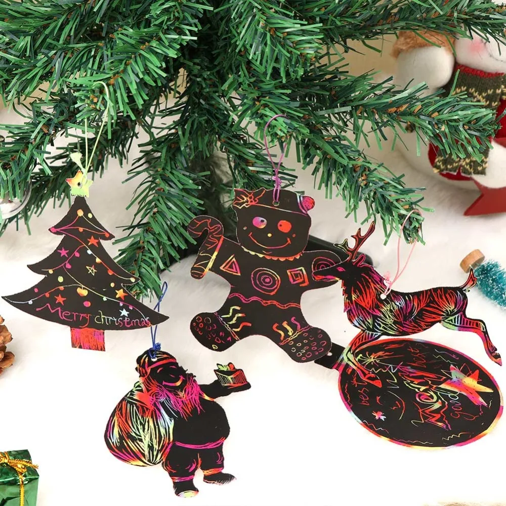 OurWarm 24pcs/lot Magic Color Scratch Christmas Ornaments Kids DIY Paper Ornaments Decoration Coloring Cards Drawing Toys