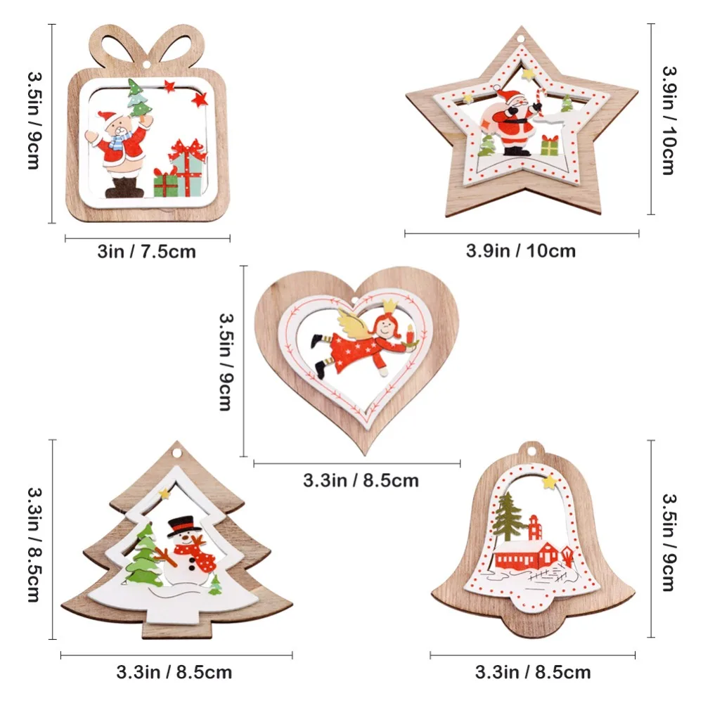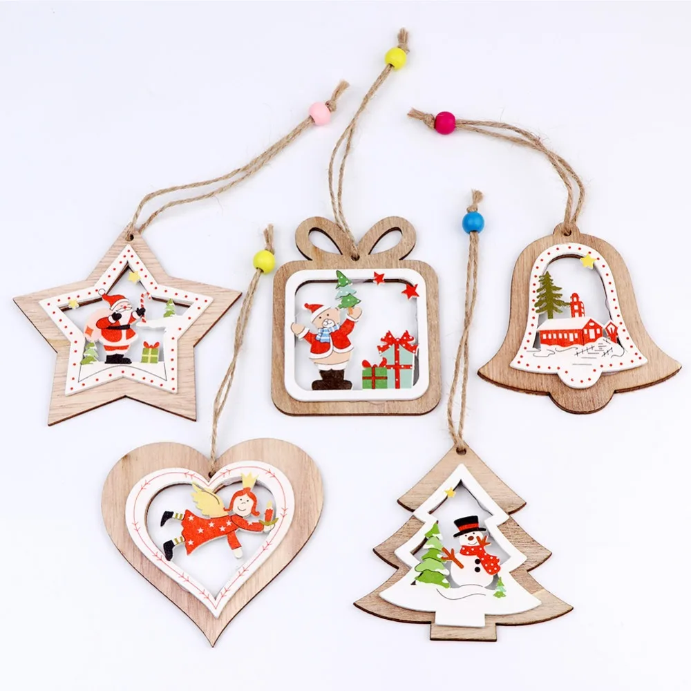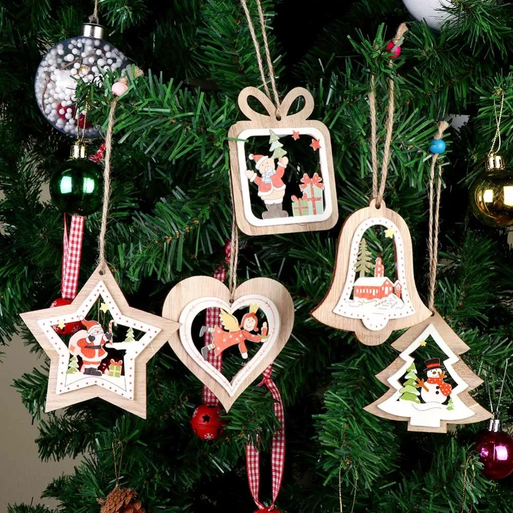 OurWarm New Year 2019 Wooden Christmas Ornaments 5 Style Rustic Christmas Tree Decoration Pendant Christmas Gifts Tags Crafts