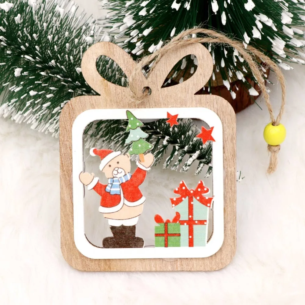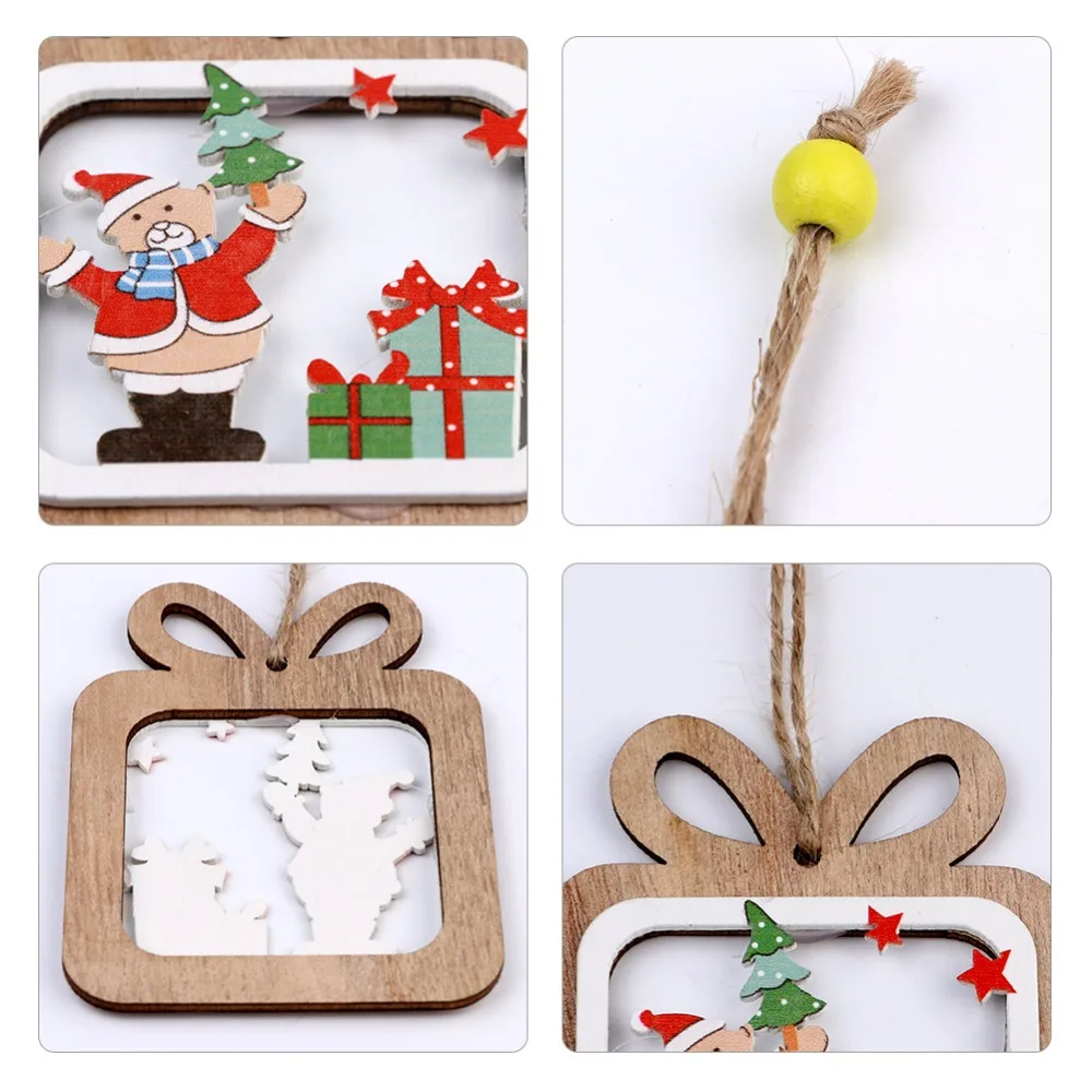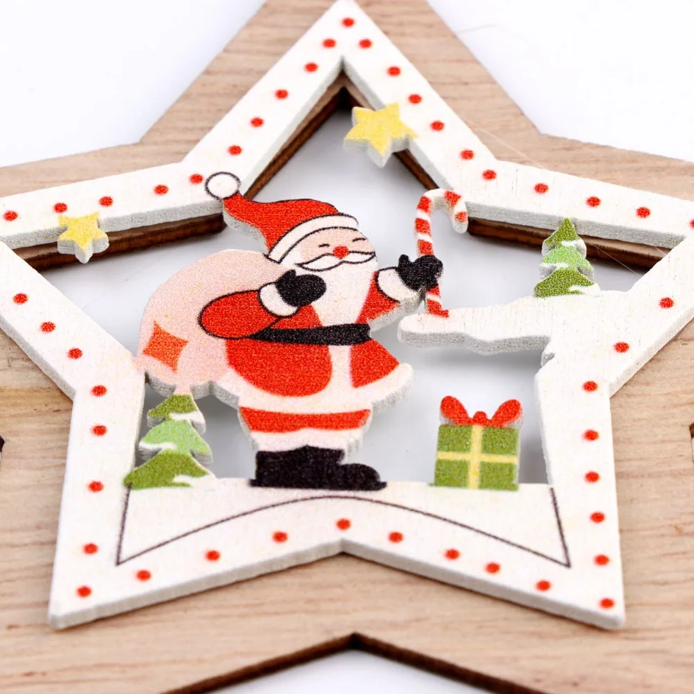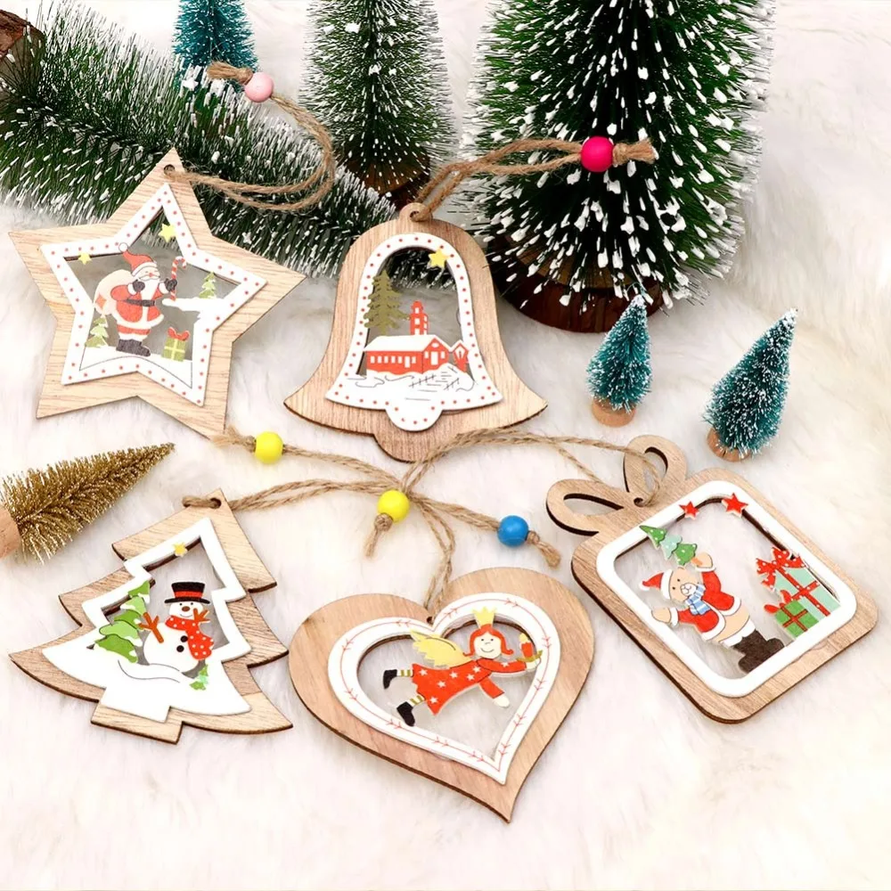 OurWarm New Year 2019 Wooden Christmas Ornaments 5 Style Rustic Christmas Tree Decoration Pendant Christmas Gifts Tags Crafts