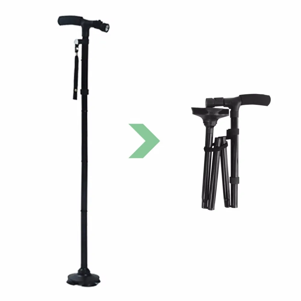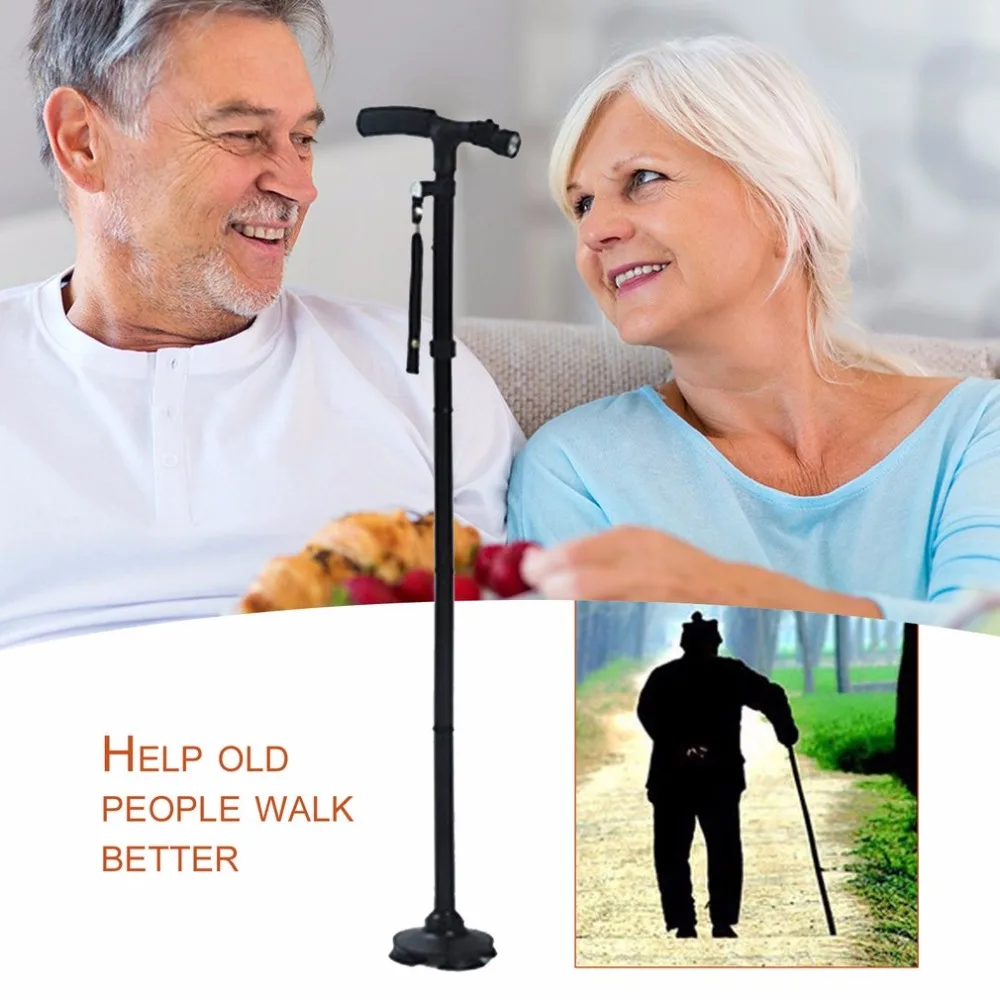 OUTAD Magic Cane Folding LED Light Safety Walking Stick 4 Head Pivoting Trusty Base For Old Man T Handlebar Trekking Poles Cane
