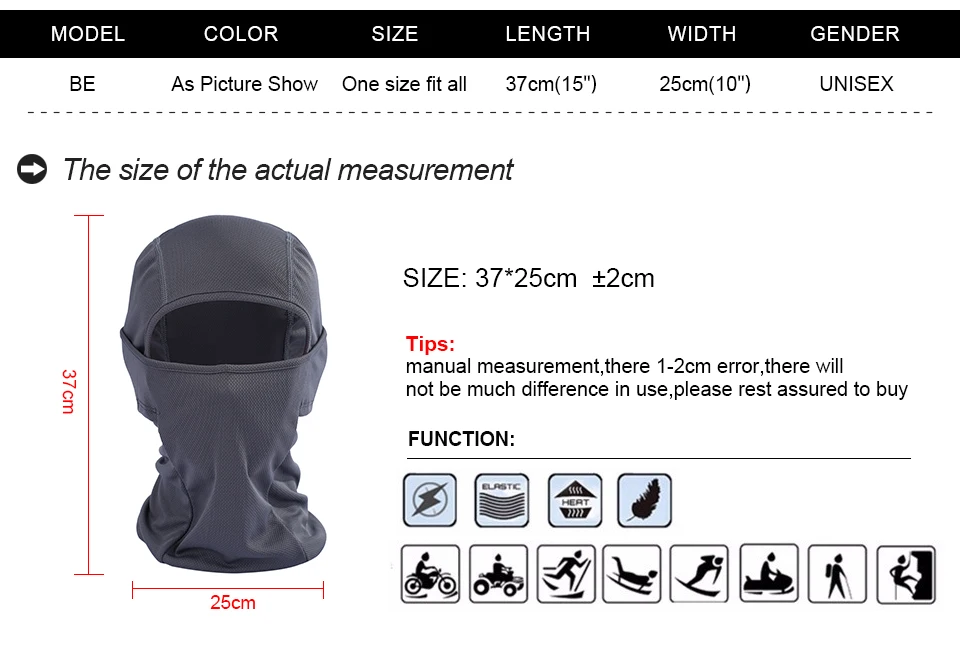 • Multi-purpose: This balaclava are perfect in cold or sunny weather. It is versatile to be used all the year around. You can use it under any kind of helmet or hat.