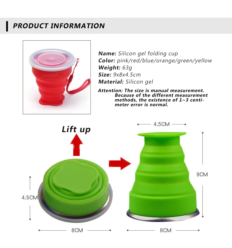 Outdoor portable folding water cup multi function creative water cup silica gel folding silicone folding cup