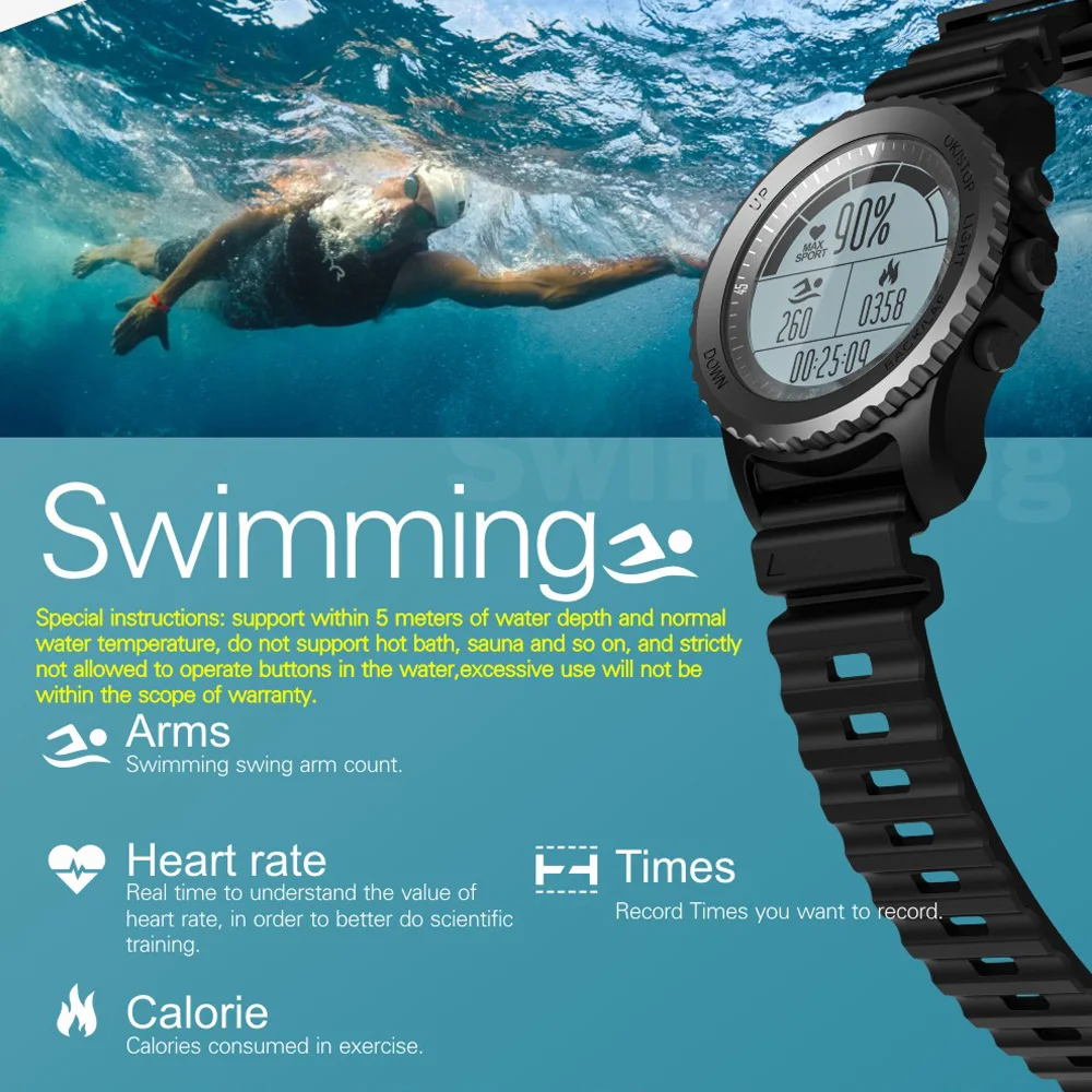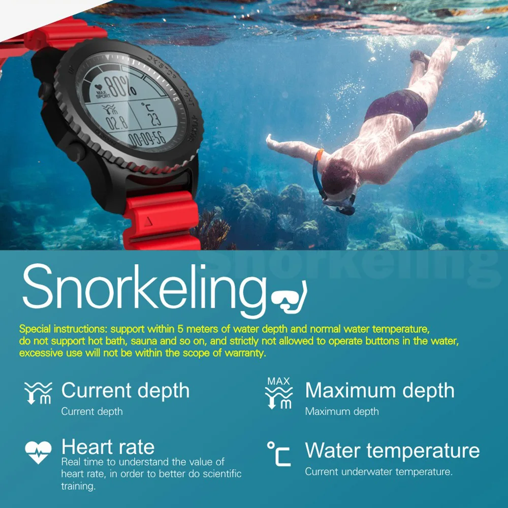 IP68 grade professional waterproof: You can wear it when you are swimming or snorkeling, but the operation about the snorkeling mode need to follow the instructions.