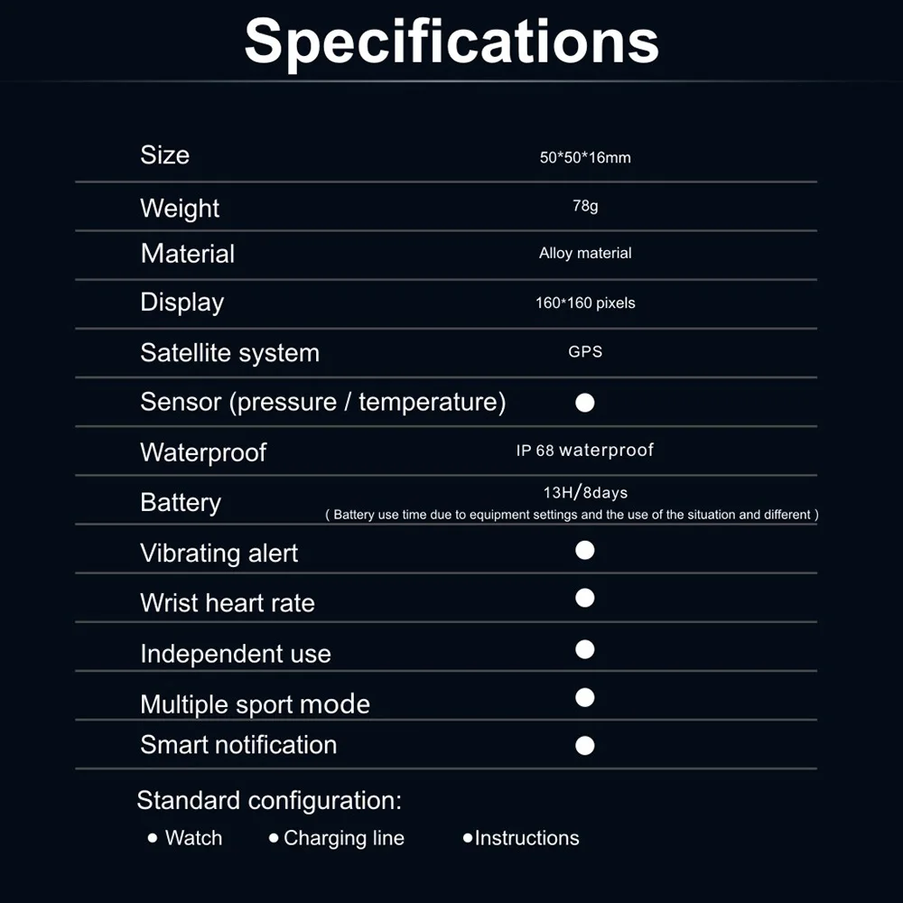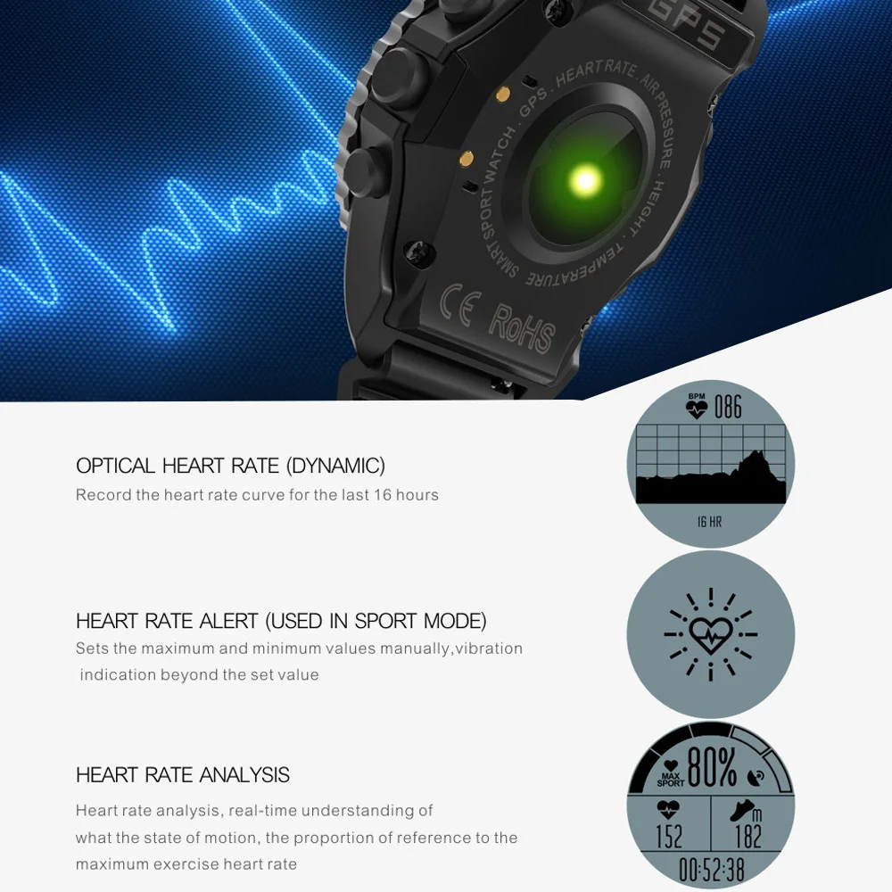 It is very multifunctional, built-in GPS chip, with sports data tracker, heart rate and sleep monitor, altimeter/barometer/thermometer/compass, long battery life, data sync and share, and various sports modes, just like a personal assistant in your life.