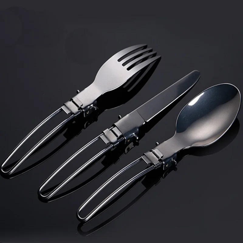 Outdoor Tableware Stainless Steel Portable Spoon Knife Fork 3 in 1 Camping Foldable Survival Tools Folding Set For Picnic Hiking
