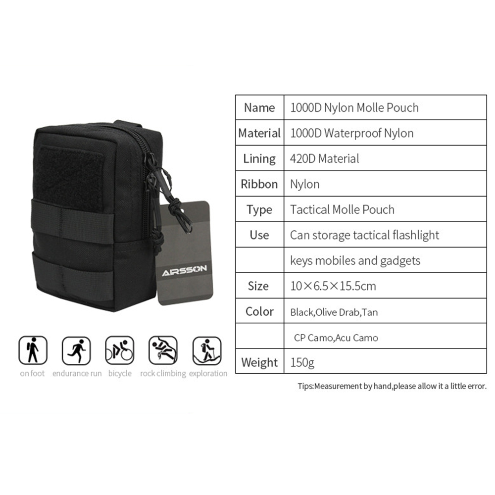 This small admin pouch has molle and velcro system. The back two molle strap is convenient for you to hang it in your tactical belt, tactical vest, backpacks to as a extra accessory. The front molle system is good for looping tactical pens, knives, little flashlight, etc.