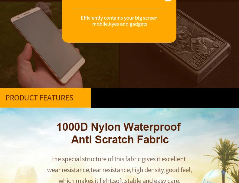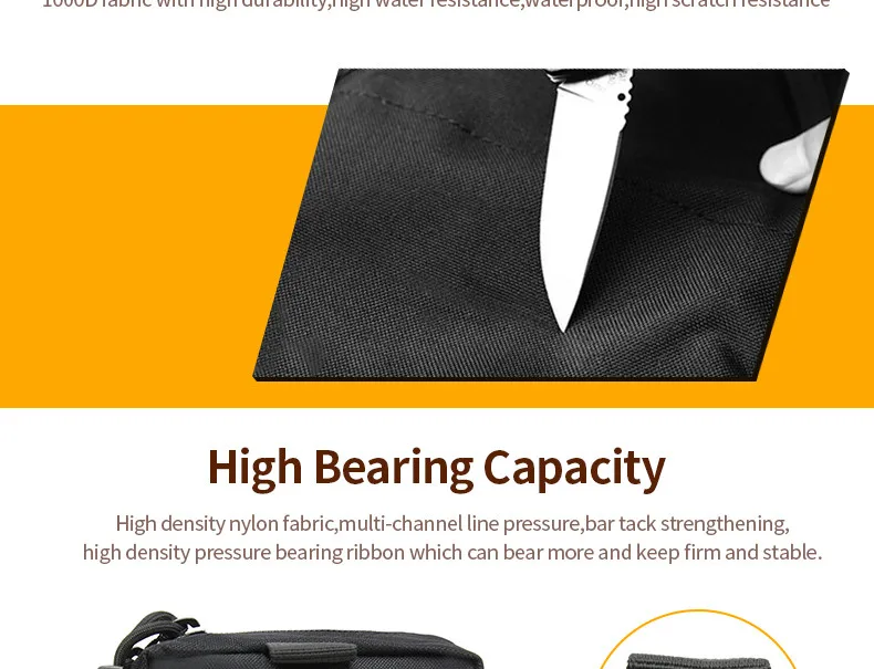 - Made of high quality 1000D nylon material. Lightweight, waterproof, sturdy, durable, wear-resistant.