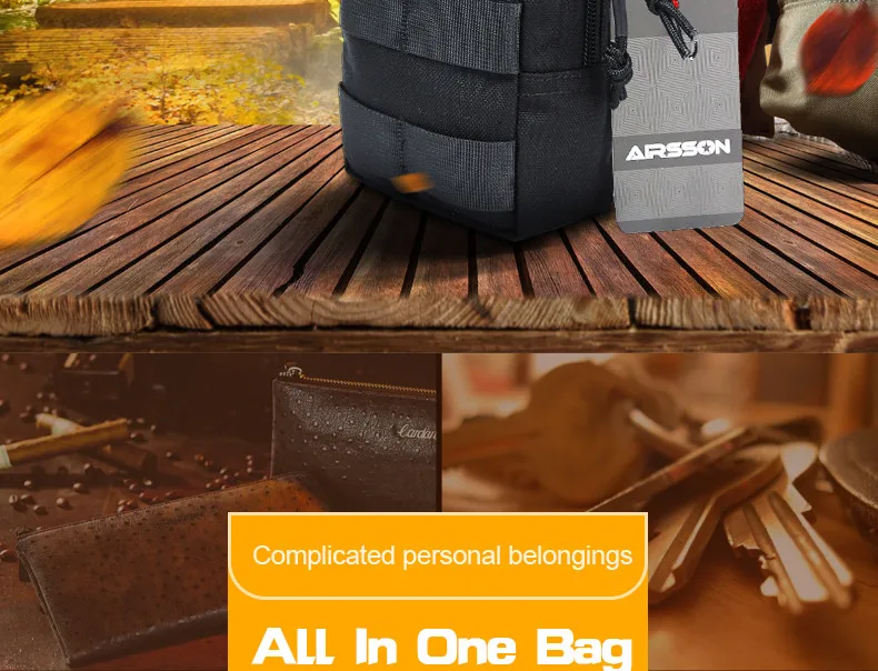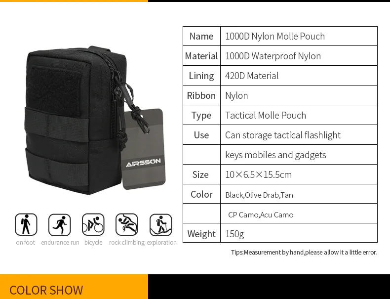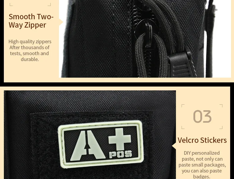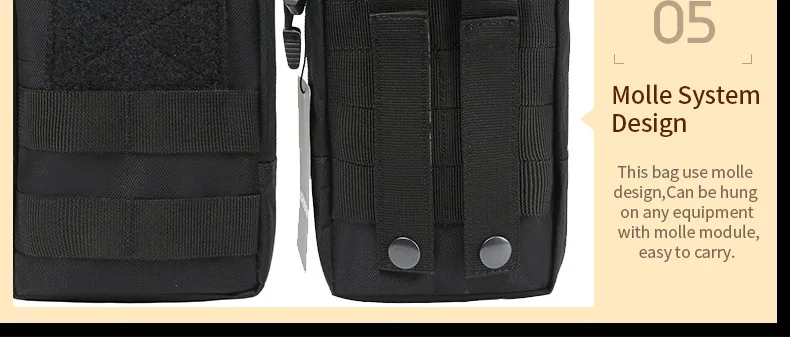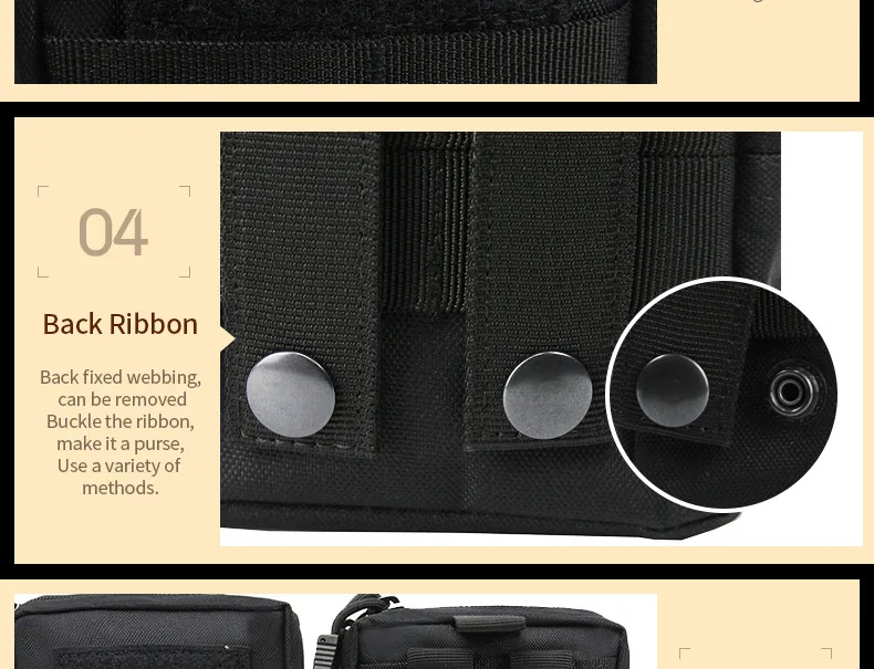 This small admin pouch has molle and velcro system. The back two molle strap is convenient for you to hang it in your tactical belt, tactical vest, backpacks to as a extra accessory. The front molle system is good for looping tactical pens, knives, little flashlight, etc.