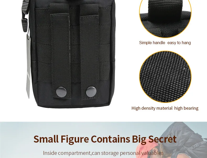- With press button in the back, easy to put the bag to your belt or molle vest
