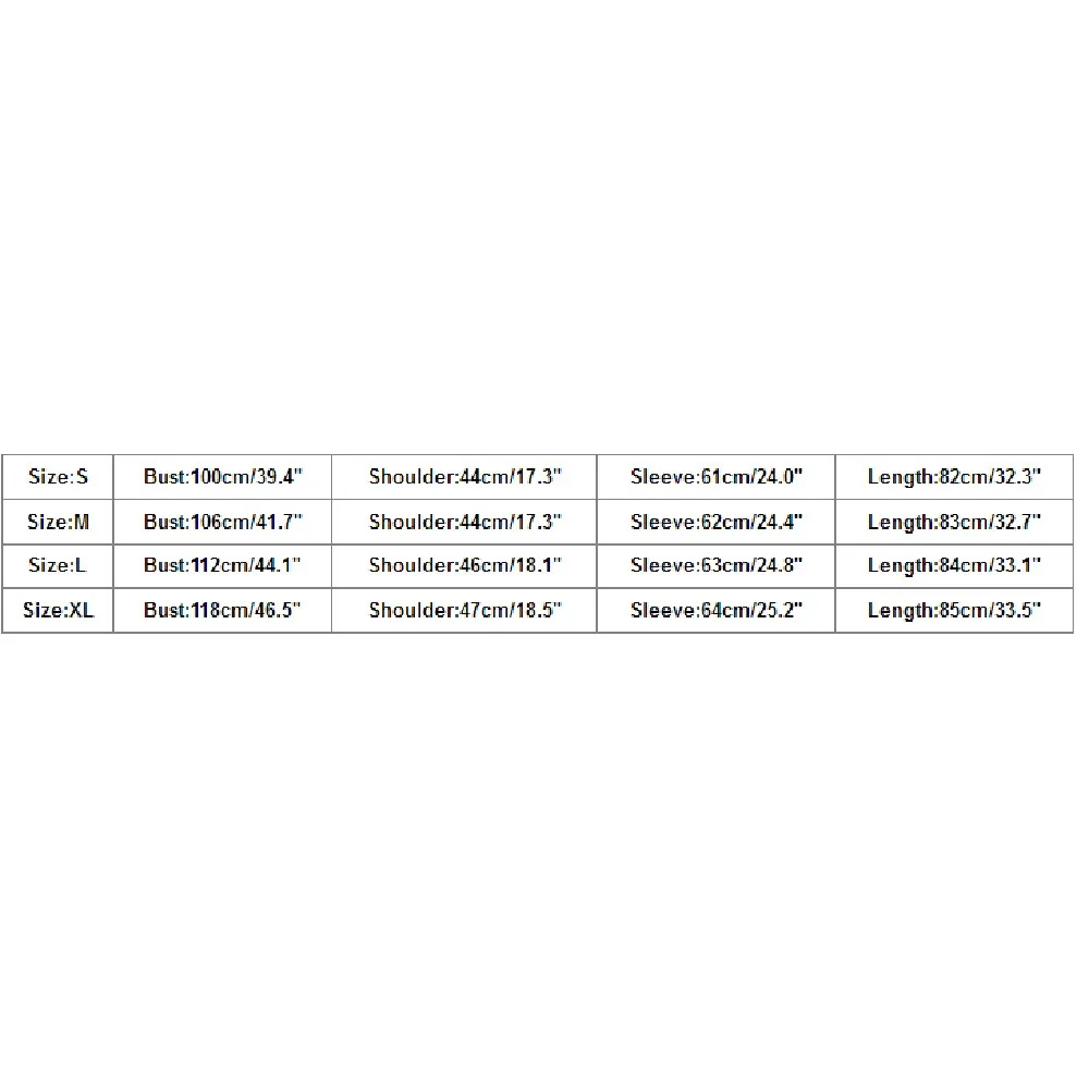 Size Bust Shoulder Sleeve Length