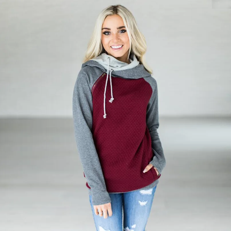 Oversize XXXL Hoodies Sweatshirts Women Pullovers Zipper Hoodie Female Patchwork Double Hooded Sweatshirt Autumn Coat Warm Hoody