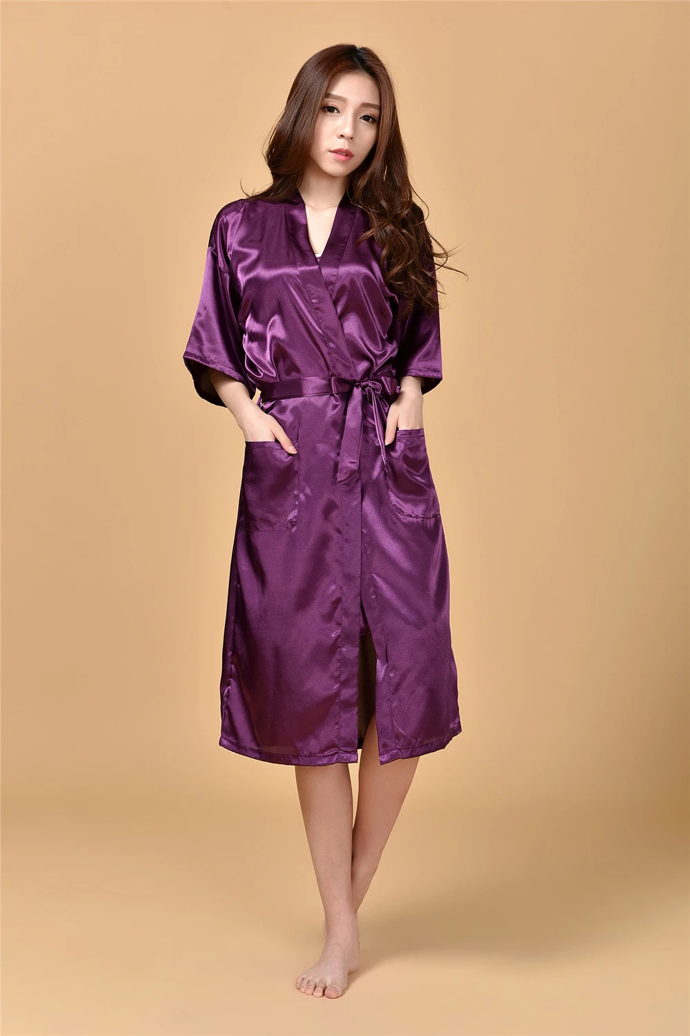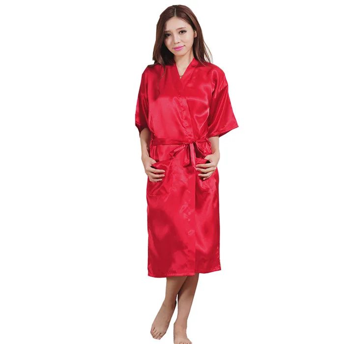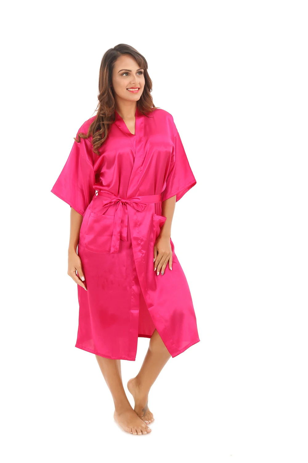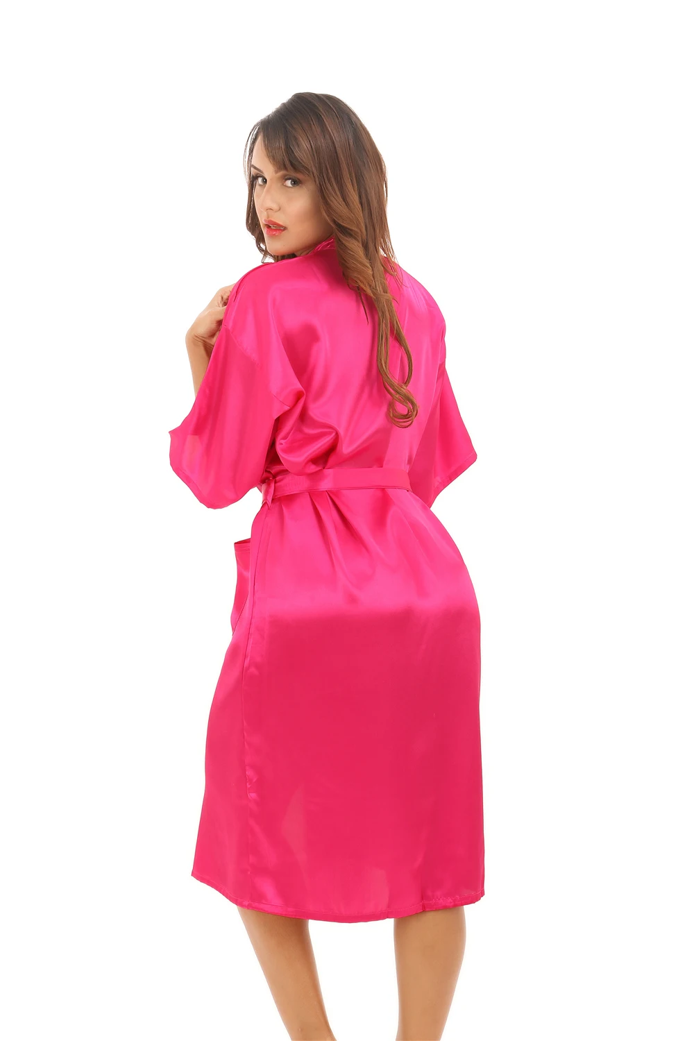 Oversize XXXL Women’s Kimono Solid Hot Pink Bridesmaid Wedding Robe Gown Ladies’ Home Leisure Nightgown Casual Sleepwear YZ706