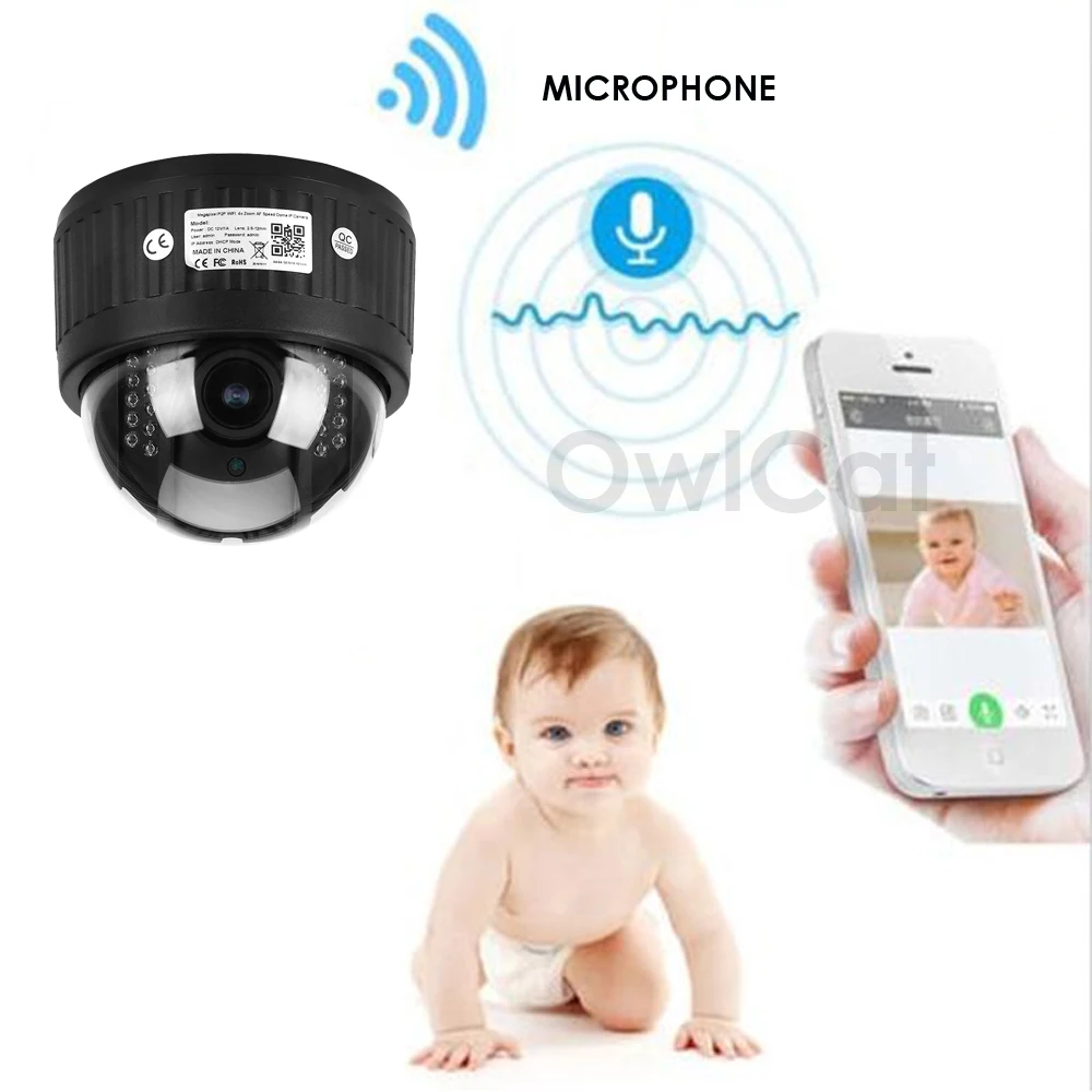 OwlCat Full HD 1080P/960p Security Camera Indoor Dome IP Camera 5x Zoom Two Way Audio Talk With Microphone SD Memory Card Slot P2P ONVIF Email Motion