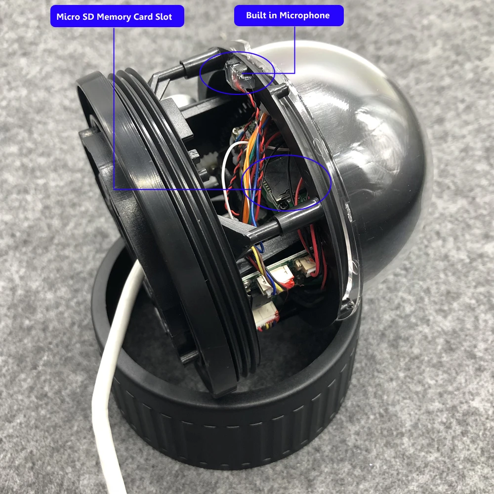 Camera builts in microphone, supports audio / sound / voice monitoring in 10m distance