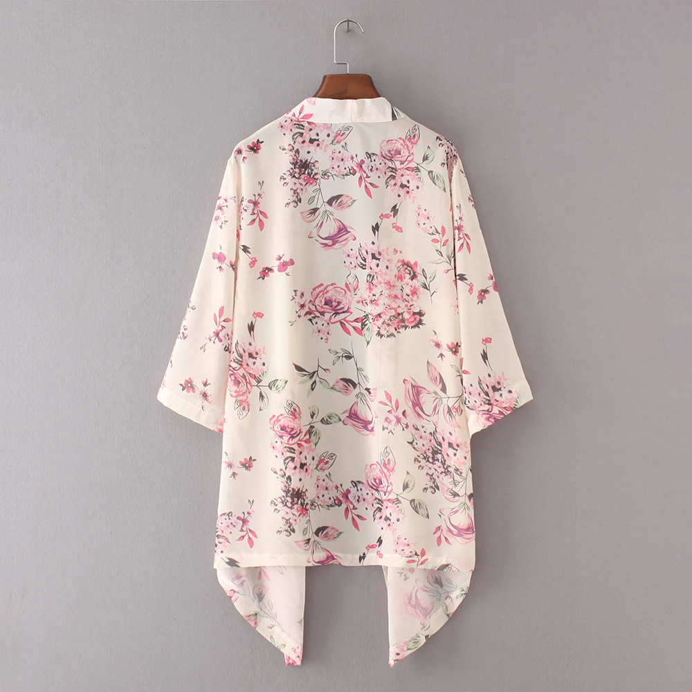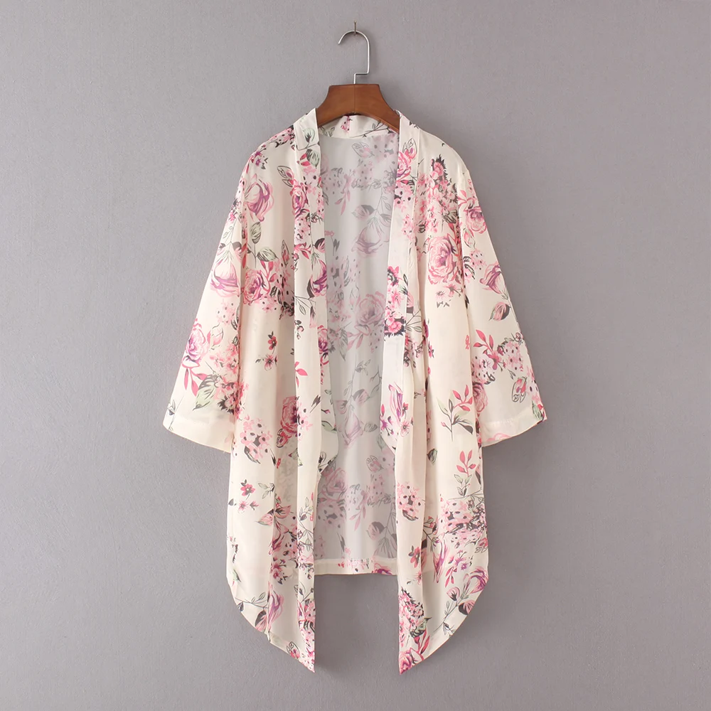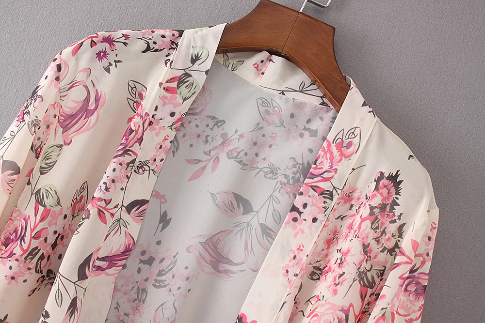 OXUAN Summer Style Women Floral Kimono Cardigan Half Sleeve Chiffon Loose Flower Print Cape The Kints Blouse Kimono Tops Shirts