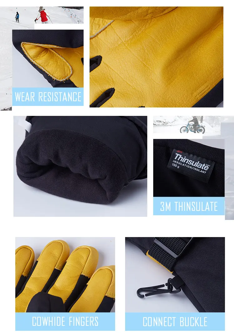 OZERO Ski Gloves Winter Snowmobile Sports Motorcycle Riding Windproof Waterproof Warm Skiing Snowboard Gloves For Men Woman 9008