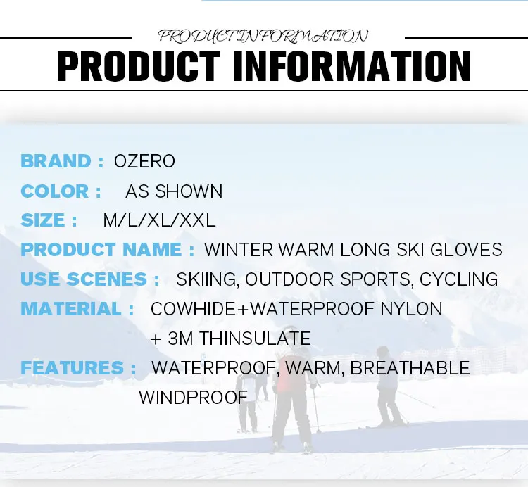 OZERO Ski Gloves Winter Snowmobile Sports Motorcycle Riding Windproof Waterproof Warm Skiing Snowboard Gloves For Men Woman 9008