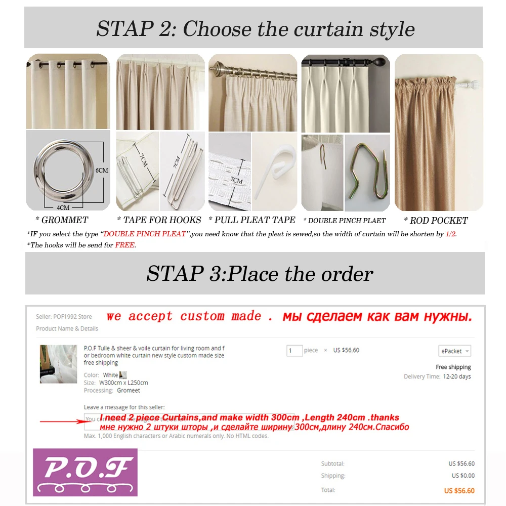 P.O.F Curtains for living room spindrift style window treatment voile for bedroom 2 colors custom made size free shipping