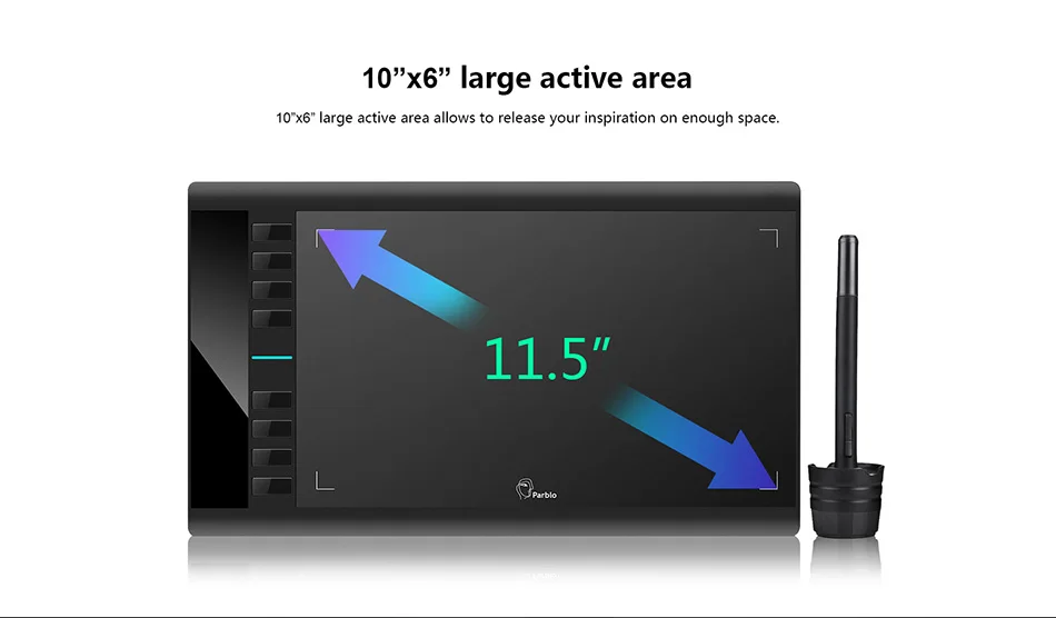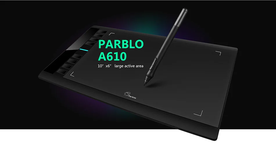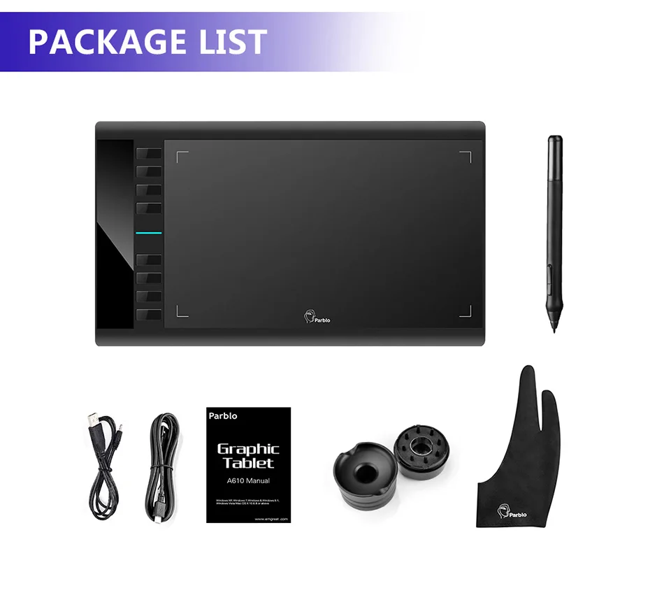 Parblo A610 Digital Tablet Graphics Drawing Tablet Pad w/Pen 2048 Level Digital Pen + Anti-fouling Glove as Gift