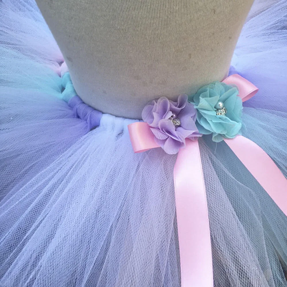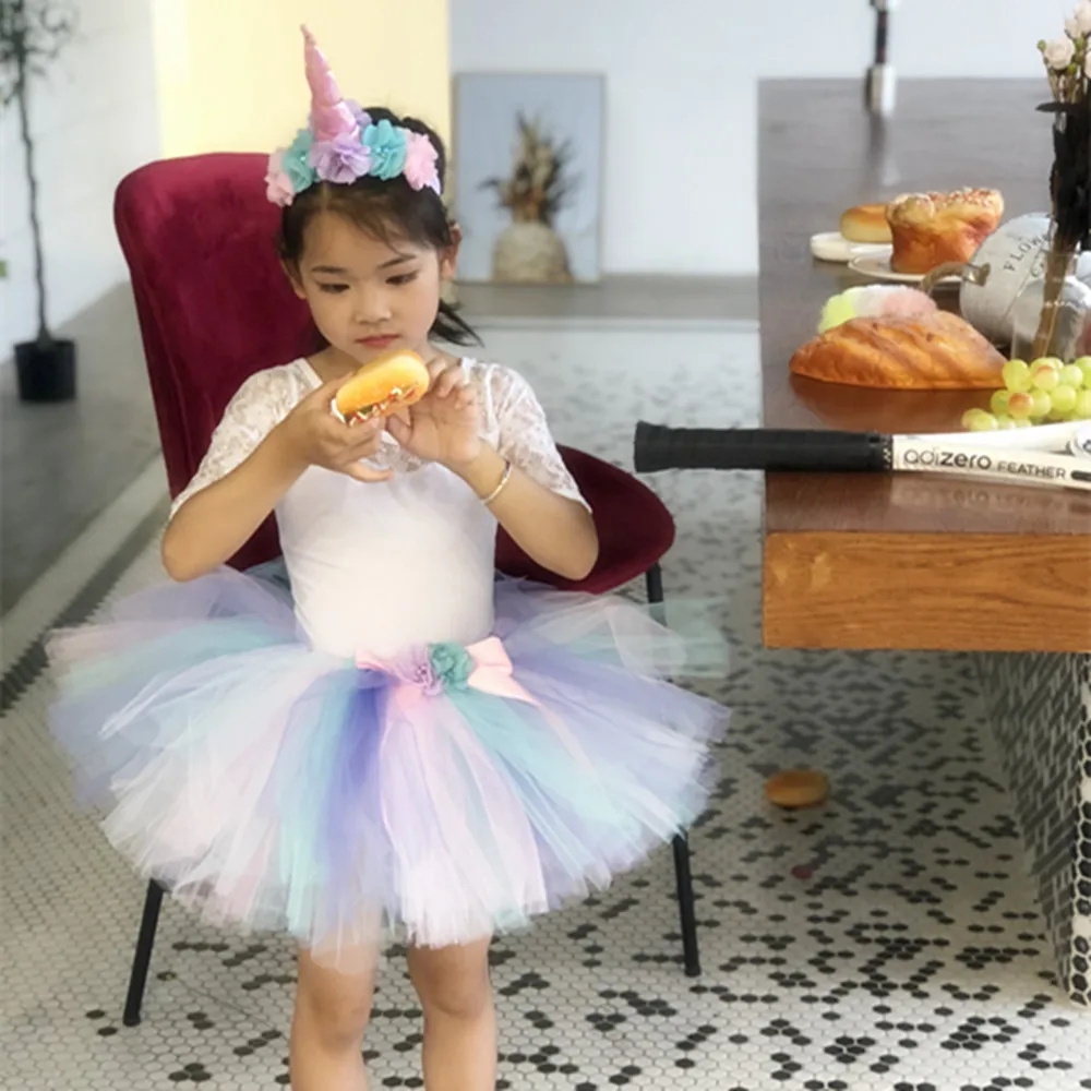 Pastel Unicorn Tutu Skirt with Flower Headband Children Bustle Birthday Party Tulle Tutu Skirts For Photos Kids Costume Set